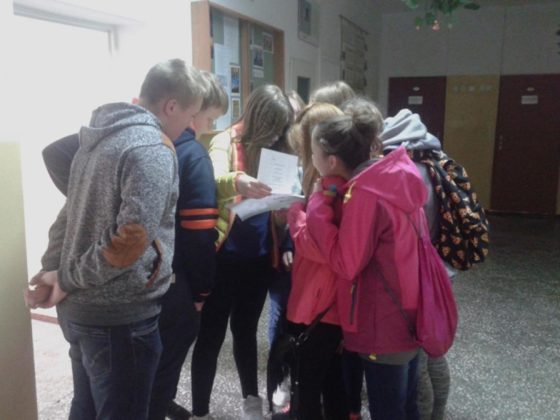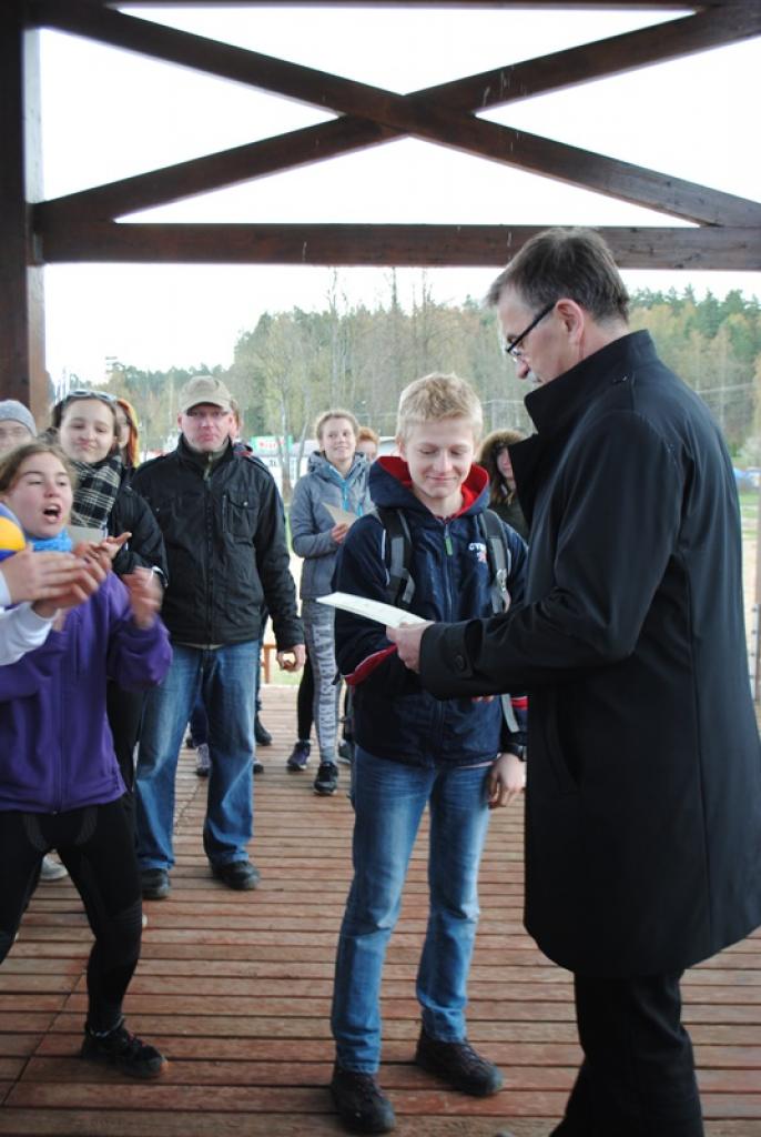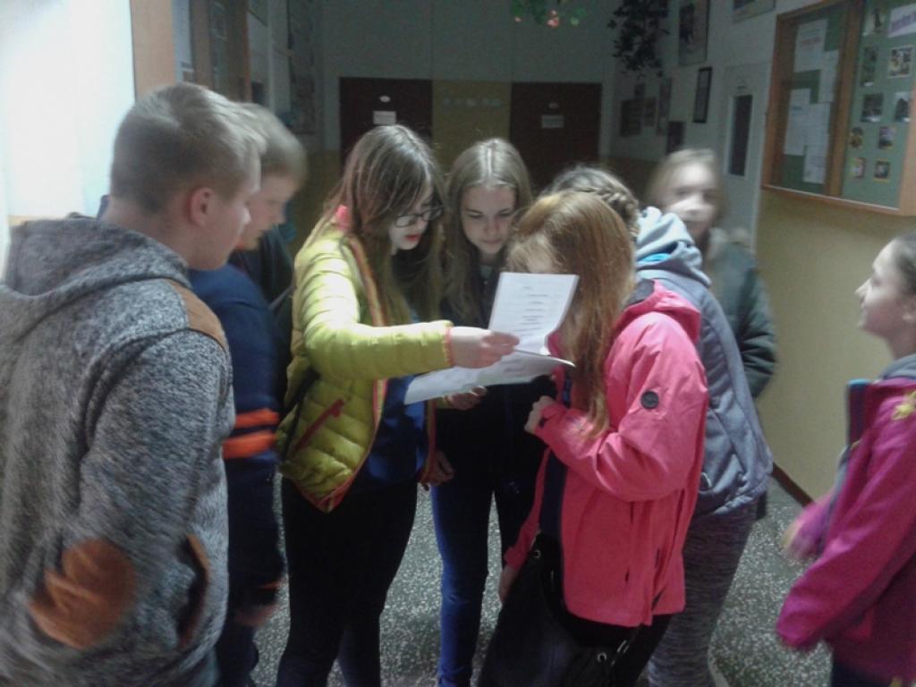 O godzinie 9.00 ruszyła w trasę pierwsza grupa. Każda klasa dostała pakiet dokumentów w kopercie (mapę i kartę drużyny), którą na starcie wręczał dyrektor gimnazjum w Wilkasach pan Zygmunt Marciniak. Wszyscy musieli się wykazać umiejętnością pracy z mapą oraz odczytywania zagadek i wykonywania zadań, które były przygotowane w różnych punktach trasy.