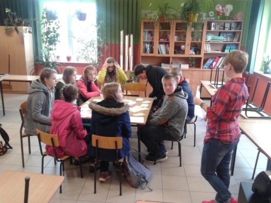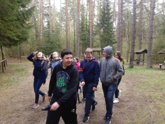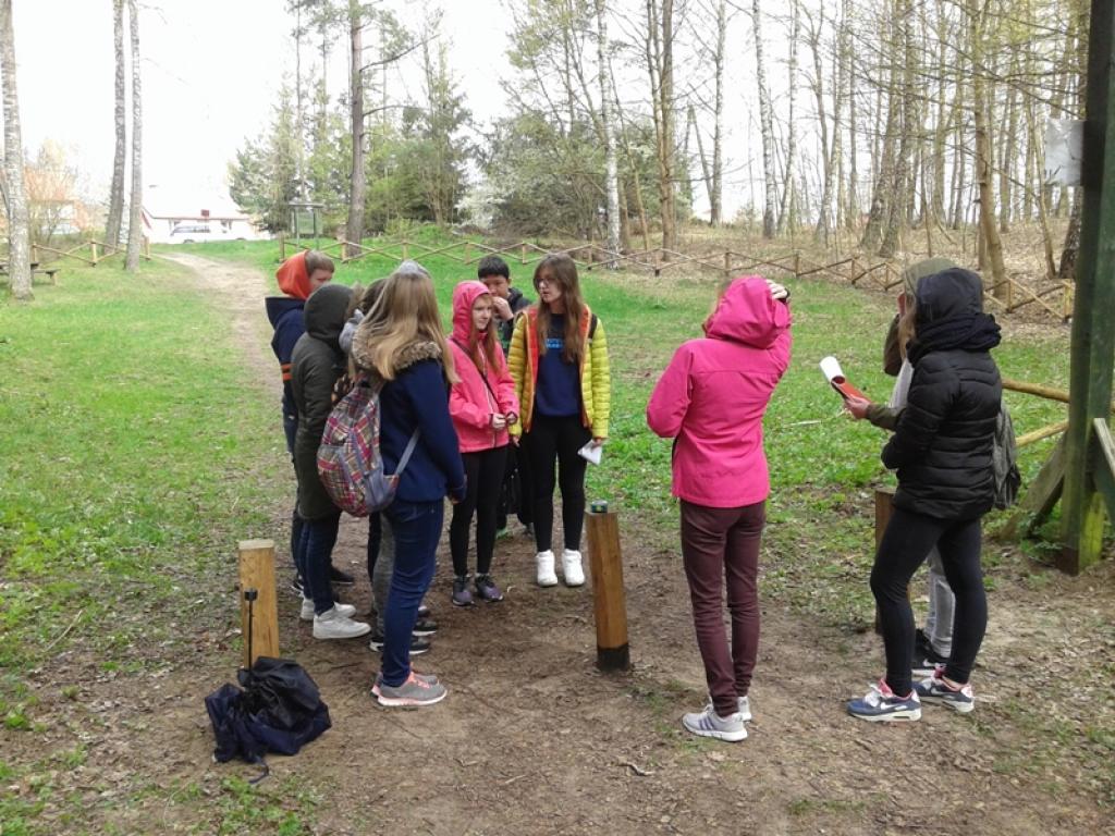 Pierwsza stacja, zorganizowana na terenie szkoły, dotyczyła segregacji śmieci. Niby proste i oczywiste, bo każdy powinien to robić na co dzień, ale zadanie sprawiło wiele problemów wszystkim drużynom. Druga stacja była także w szkole i odnosiła się do wiedzy ogólnej z ekologii. Ku zaskoczeniu wszystkie drużyny poradziły sobie z tym bardzo dobrze. Po ukończonym quizie klasy wyszły w plener. Kolejny przystanek znajdował się na początku ścieżki przyrodniczo-edukacyjnej „WILK- ASY”. Tu rywalizujące grupy odpowiadały na pytania, które dotyczyły lokalnej topografii.. Dodatkowym wyzwaniem było zadanie drużynowe, w którym należało stworzyć co najmniej dwumetrową wolnostojącą wieżę z dostępnych w pobliżu materiałów. Uczniowie przy tym bawili się znakomicie, zaskakiwali przede wszystkim swoją kreatywnością oraz pomysłowością, powstała nawet „żywa” wieża – z uczniów. Na kolejnym przystanku uczestnicy musieli wykazać się wiedzą dotyczącą znajomości drzew iglastych. Dla niektórych gałązki różnych „iglaków” wyglądały tak samo, więc maksymalną liczbę punktów zdobywały nieliczne drużyny. Przedostatnia stacja znajdowała się przy głównym ognisku na ścieżce. Tutaj nauczyciel geografii przygotował zadania, które łączyły w sobie wiedzę geograficzną oraz myślenie matematyczno-logiczne. Siódme zadanie było typowo sportowym wyzwaniem, liczyła się tylko siła, którą uczniowie mieli w nogach. Skok w dal z miejsca i odmierzanie odległości za pomocą własnych stóp – ta konkurencja kończyła drużynową rywalizację.