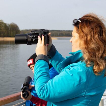 W ruch poszły dziś lornetki i lunety, a trzask migawek licznych aparatów fotograficznych na widok pozujących bielików, kań czarnych, czy błotniaka stawowego pewnie zawstydzał same ptaki, które nie spodziewały się takiej popularności. Można było odnieść wrażenie, że jesteśmy przy czerwonym dywanie na Gali Oskarowej, a nie na środku jeziora pomiędzy urokliwymi wyspami.