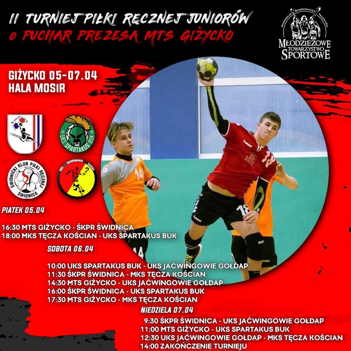 II Turniej Piłki Ręcznej Juniorów 2 kwietnia 20190Od piątku do niedzieli (05-07.04) potrwa II Turniej Piłki Ręcznej Juniorów o puchar Prezesa MTS Giżycko. Szczegóły na plakacie poniżej.