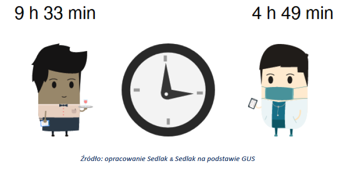 prawie 3 h pracy, z kolei pracownicy zarabiający przeciętne wynagrodzenie 1 h 27 min.