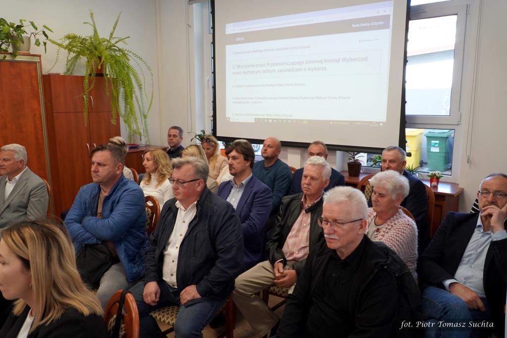 We wtorek, 7 maja w sali konferencyjnej Urzędu Gminy Giżycko odbyła się pierwsza sesja Rady Gminy Giżycko, podczas której nowo wybrani radni oraz wójt Marek Jasudowicz złożyli ślubowanie.