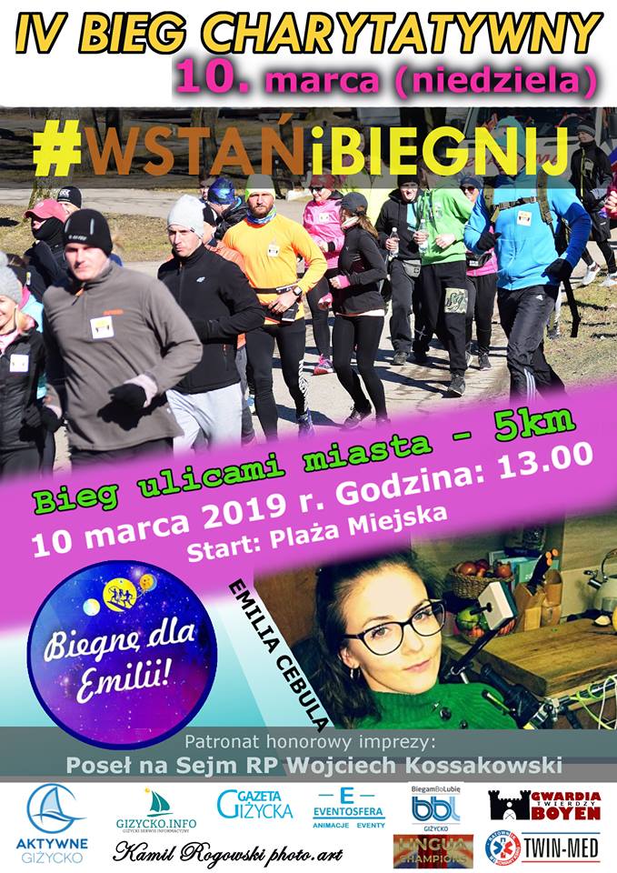 Od tamtej pory Emilia, która jest komunikatywną, uśmiechniętą, mądrą i piękną dziewczyną, została uwięziona w swoim ciele. Porusza jedynie głową, Internet obsługuje ustami. Jest jednak światełko w tunelu. Mimo paraliżu czterokończynowego, ciągłość rdzenia kręgowego została zachowana, co pozwala mieć nadzieję, na dojście do sprawności. Niestety rehabilitacja kosztuje. Dlatego w tym roku, po raz czwarty Wasz bieg, Wasze wsparcie wrzucone do puszek, pozwolą Emilce stanąć na starcie kolejnych edycji tego pięknego biegu – GORĄCO W TO WIERZYMY! #wstańibiegnij już 10 marca.