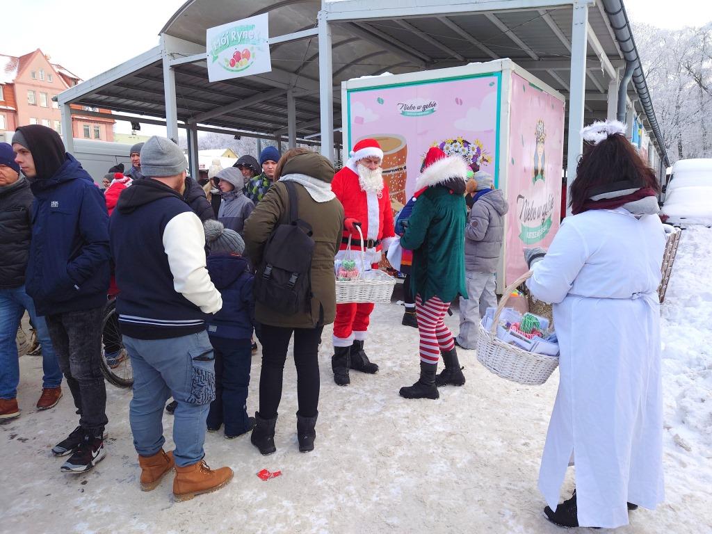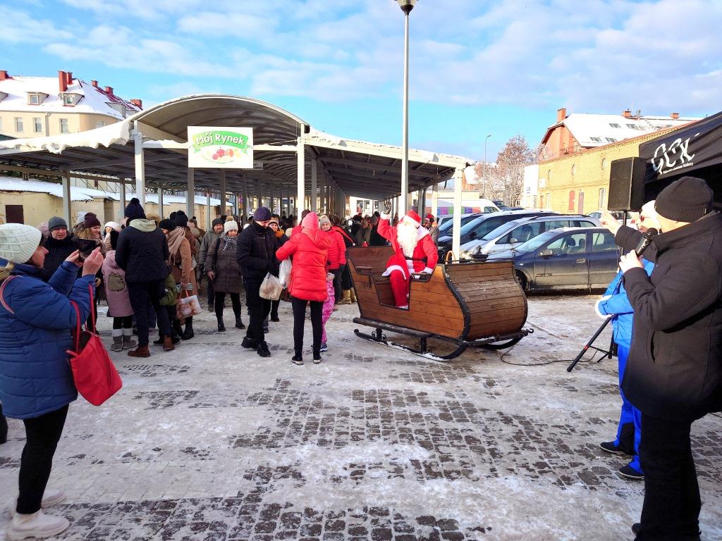 – Dzień dobry Państwu, witam Was bardzo serdecznie, zimę mamy taką, jaka powinna być, czyli trochę śniegu, trochę mrozu, żeby ten klimat świąteczny podkreślało. Zapraszam wszystkie dzieci do Mikołaja, on wam nie odjedzie, bo renifery udały się na popas, są gdzieś tam daleko, odpoczywają, bo przed nimi dużo pracy w przyszłym tygodniu. Można więc do Mikołaja podejść, usiąść przy nim, zrobić z nim zdjęcie, poprosić o prezent oraz zostawić list. Na pewno wszystkie marzenia się spełnią. Dziś w każdym bądź razie spotykamy się na Jarmarku Bożonarodzeniowym, wracamy do tej tradycji po pandemii i bardzo serdecznie witam Państwa i zachęcam do odwiedzania wszystkich stoisk. Kupujmy przedmioty związane ze świętami. Życzę wszystkim miłego dnia, zdrowych, wesołych świąt Bożego Narodzenia i szczęśliwego Nowego Roku