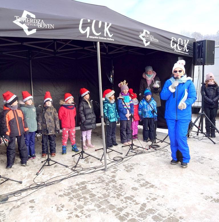 – Witajcie w ten mroźny, ale jakże słoneczny, piękny dzień. Pogoda nam dopisuje, nie wiem jak Państwo się czujecie, ja jeszcze nie zmarzłam. Mam nadzieje, że będziecie tutaj dzisiaj z nami. Dzieci są już gotowe do występów, przyszły tutaj nam pośpiewać i potańczyć. Myślę, że te dwie godziny będą absolutnie cudowne i że spędzimy je w cudownej, świątecznej atmosferze. Więc witam Państwa jeszcze raz bardzo gorąco.