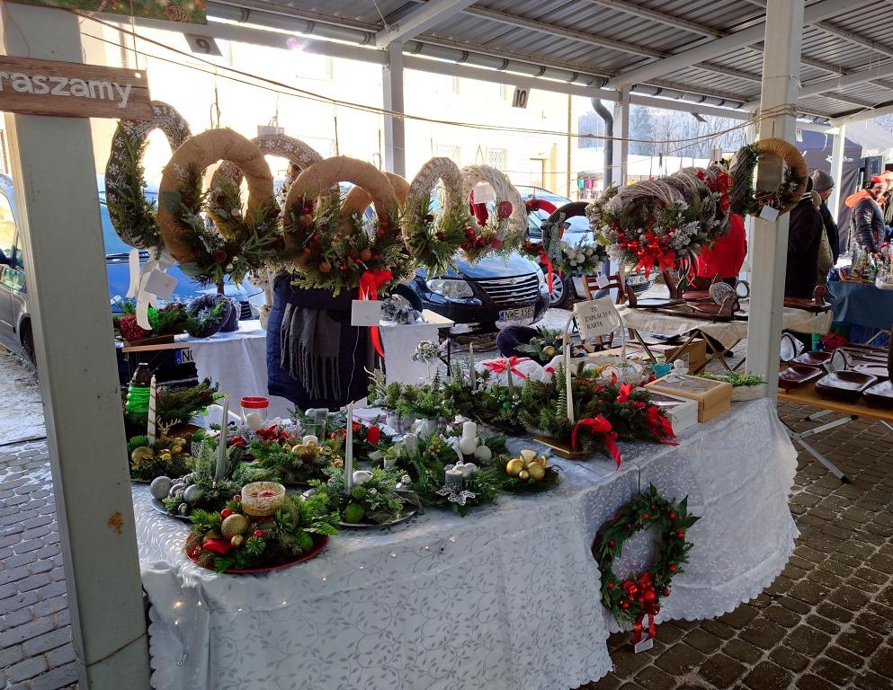 Podczas jarmarku mogliśmy kupić przepiękne ozdoby, takie jak bombki oraz stroiki. Nie zabrakło również stoisk z jedzeniem – w sprzedaży było m.in. pieczywo, mięso.