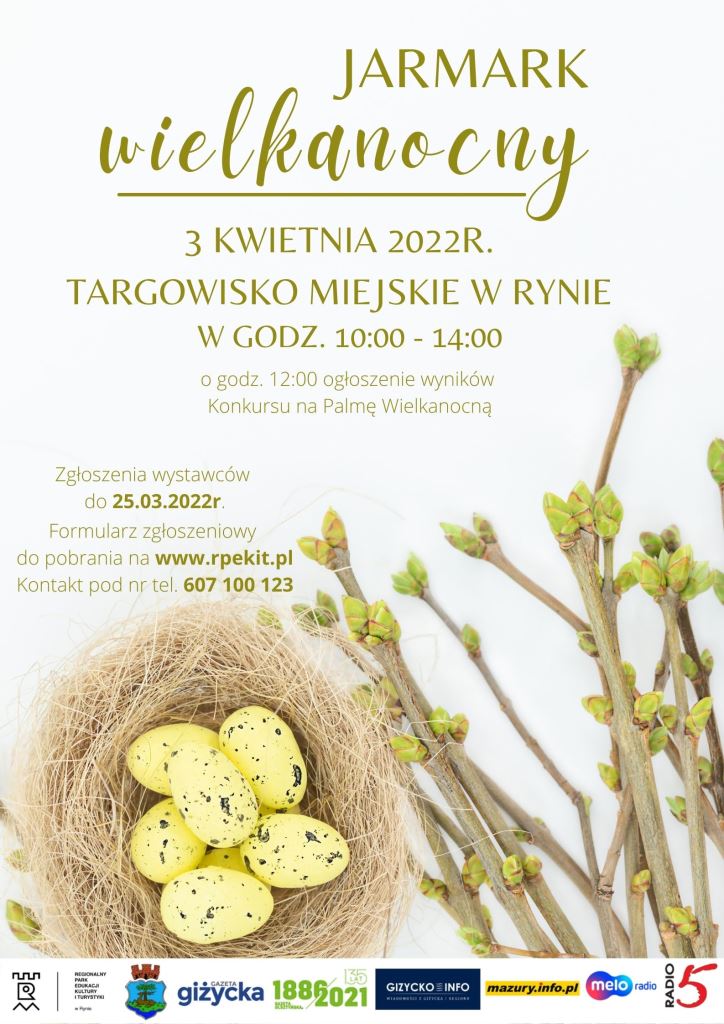 Regionalny Park Edukacji, Kultury i Turystyki w Rynie zaprasza na Jarmark Wielkanocny, który odbędzie się 3 kwietnia na Targowisku Miejskim w Rynie.