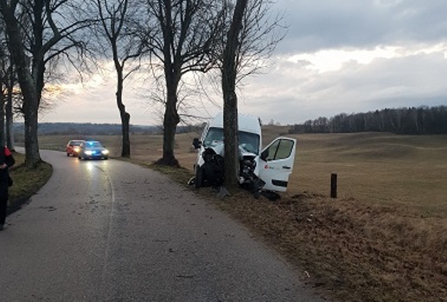Wczoraj, 25 lutego kilka minut po godzinie 15:00 policjanci giżyckiej drogówki zostali poinformowani, że w miejscowości Pamry gm. Wydminy samochód dostawczy uderzył w drzewo.