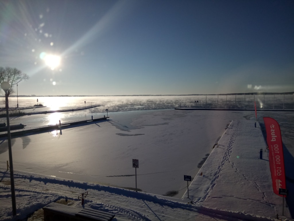 Wczoraj na szlaku WJM można było dostrzec ciekawe zjawisko, kiedy to woda dosłownie parowała dzięki bardzo niskiej temperaturze nawet -18 stopni. Działo się tak przez wiatr, który tworząc falowanie uniemożliwił powstanie pokrywy lodowej. W nocy natomiast wiatr ustał i powstał lód – nie oznacza to że jest on jednak bezpieczny! Aby można było korzystać z zamarzniętego jeziora potrzeba kilku dni srogiego mrozu by pokrywa lodowa osiągnęła odpowiednią grubość.
