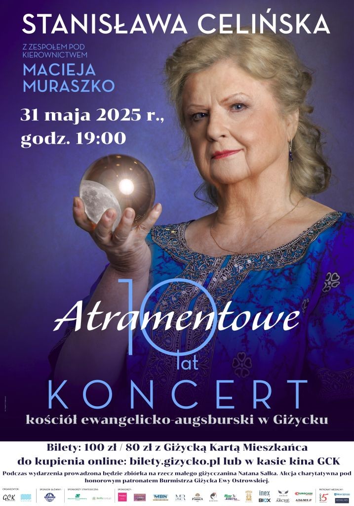 Z okazji 10. rocznicy wydania albumu Atramentowa – jednego z najbardziej poruszających i cenionych wydawnictw ostatniej dekady – Giżyckie Centrum Kultury zaprasza na wyjątkowy koncert jubileuszowy Stanisławy Celińskiej. Wydarzenie odbędzie się 31 maja 2025 roku w kościele ewangelicko-augsburskim w Giżycku.