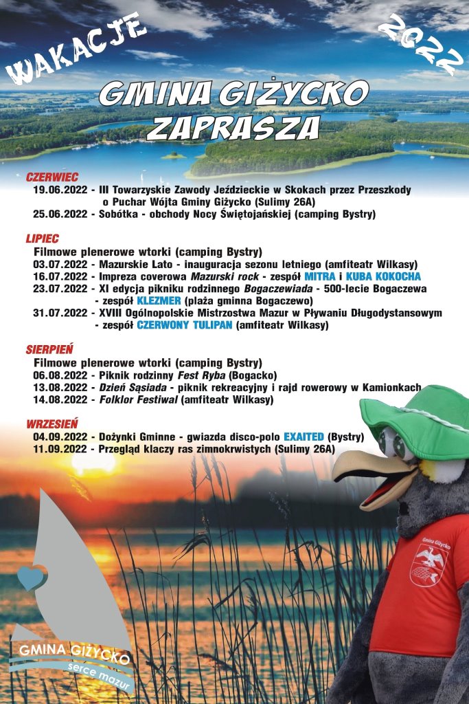 Kalendarz wydarzeń w Gminie Giżycko 13 czerwca 20220Aktualny kalendarz wydarzeń w Gminie Giżycko od czerwca do września 2022 r.
