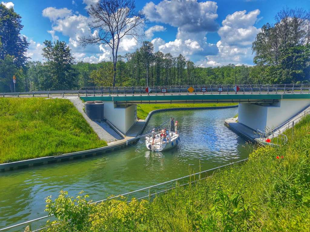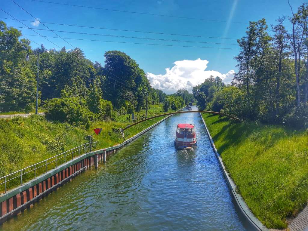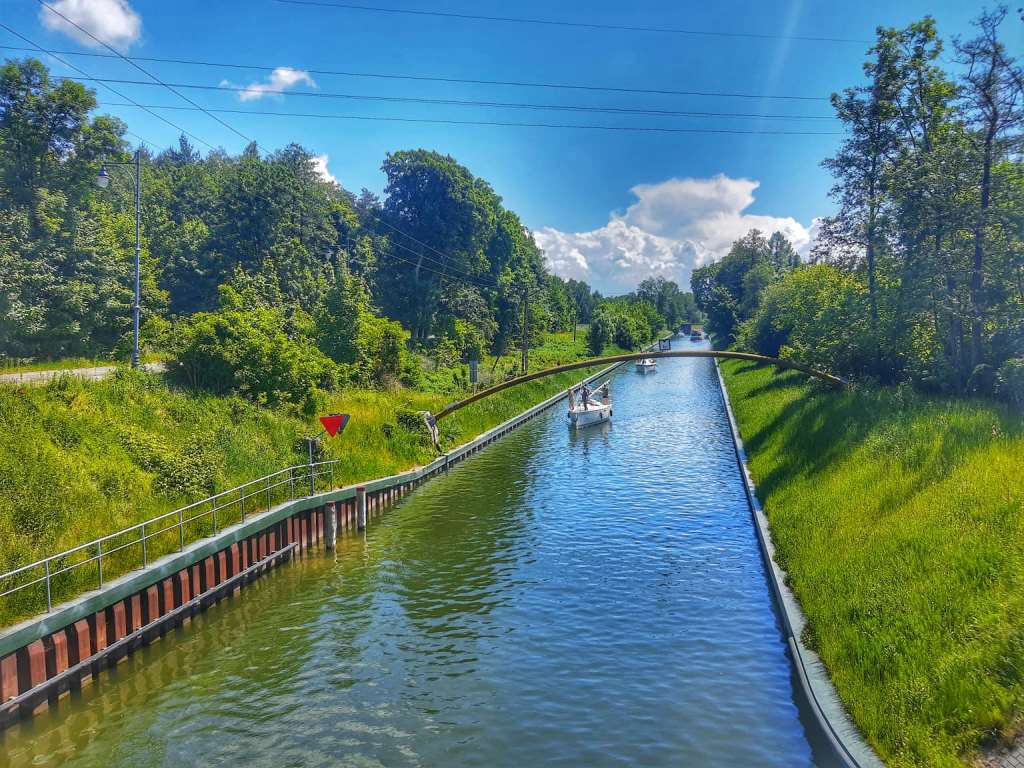 Ma długość 1200 metrów, przechodzi pod mostem kolejowym odcinka linii kolejowej z Wilkas do Giżycka, a dalej pod mostem drogowym łączącym te same miejscowości. Po zachodniej stronie kanału leżą Wilkasy, a po wschodniej Giżycko.