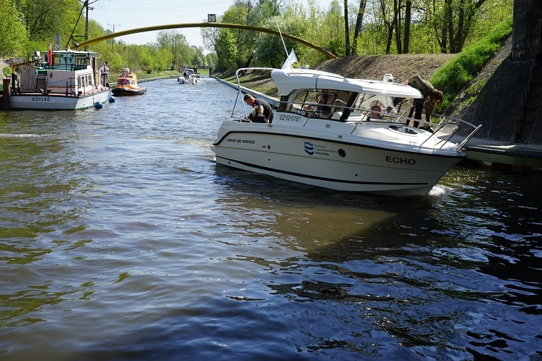 W ramach inwestycji, dokonano także zakupu łodzi inspekcyjno-pomiarowej, posiadającej echosondę z bocznym przetwornikiem obrazowania 3D do weryfikacji głębokości i stanu dna kanału, w okresie trwałości projektu. Wyposażenie łodzi pozwoli na dokonywanie powyższych czynności w każdych warunkach pogodowych, przy jednoczesnym zachowaniu bezpieczeństwa członków załogi. Po zakończeniu okresu trwałości, sprzęt będzie wykorzystywany do kontroli całego odcinka drogi wodnej na Wielkich Jeziorach Mazurskich.