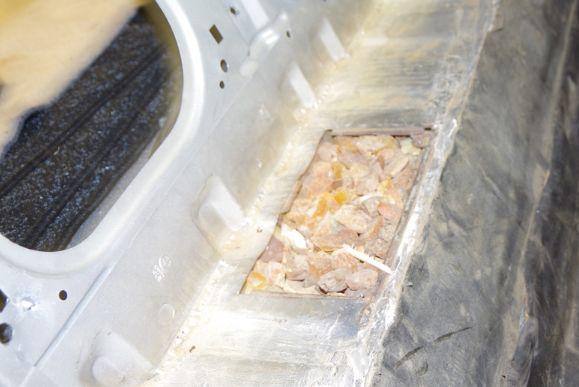 Odczyt obrazu skanera wskazywał, że za tylną kanapą może być ukryta kontrabanda. W trakcie dalszych czynności okazało się, że oparcie kanapy przykręcone jest do blaszanej ścianki w bagażniku, tworząc przestrzeń do ukrycia towarów. Po demontażu siedzenia, funkcjonariusz dokonujący rewizji stwierdził, że w belce pod kanapą wycięto dwa prostokątne otwory zakryte kawałkami przykręconej blachy.
