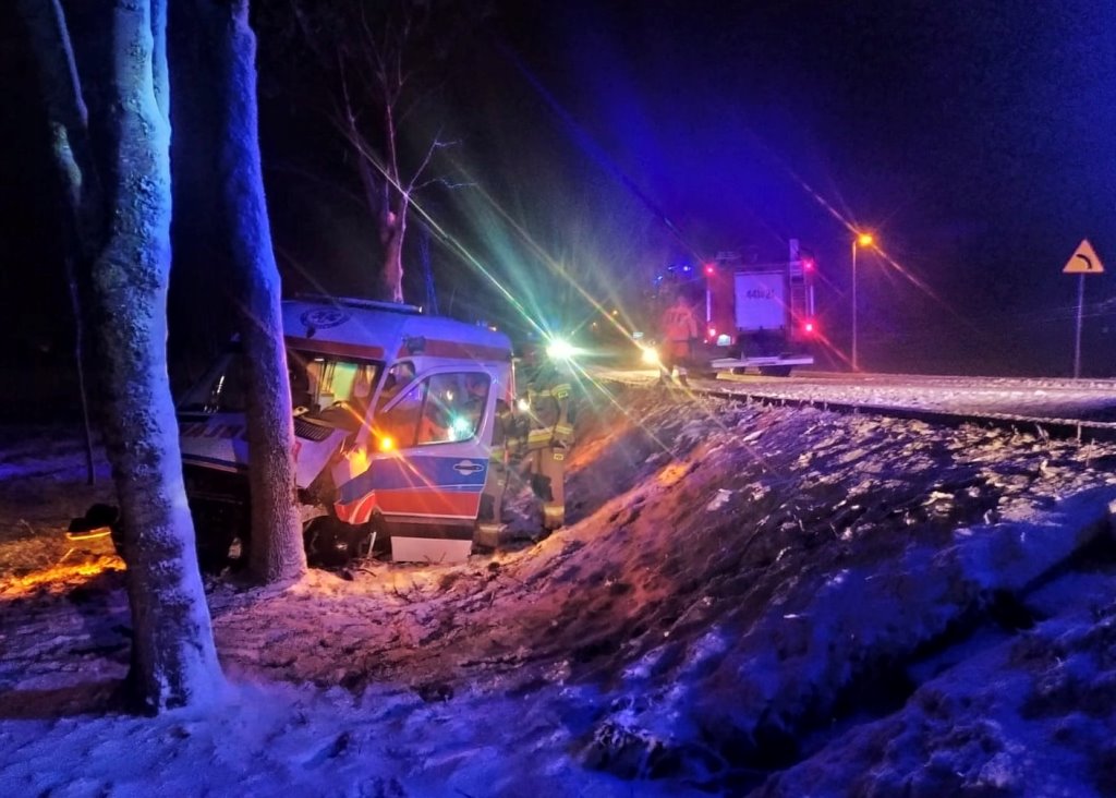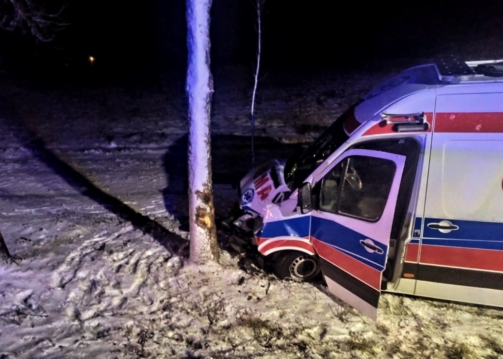 W niedzielę 30 stycznia na drodze krajowej nr 59 na odcinku Wilkasy-Wilkaski karetka wjechała do przydrożnego rowu.