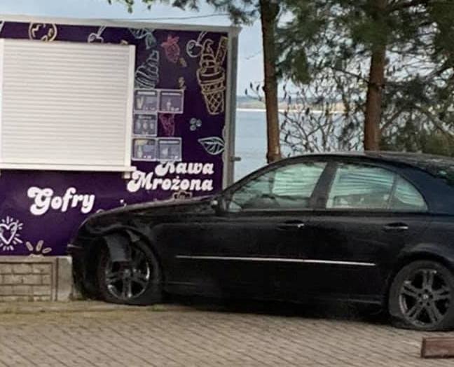 Tutaj kierowca mercedesem stracił panowanie nad pojazdem. Auto przejechało przez środek ronda, uderzyło w ogrodzenie posesji oraz znajdującą się tam budkę z lodami.