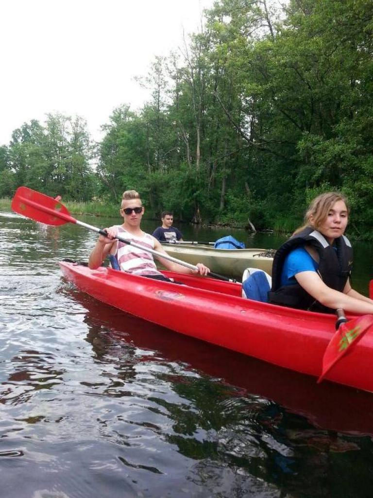 O godzinie 8.30 wszyscy zebrali się pod szkołą wyposażeni w dobre humory wyruszyli w drogę. Na miejscu czekały na klasę juz kajaki, uczniowie dobrali się w pary i wyruszyli na przeciw przygodom. Klasowy spływ kajakowy okazał się strzałem w dziesiątkę, nie obeszło się oczywiście bez wzajemnego chlapania wodą, przepychanek a także wpadki do wody i przywrócenia kajaku!