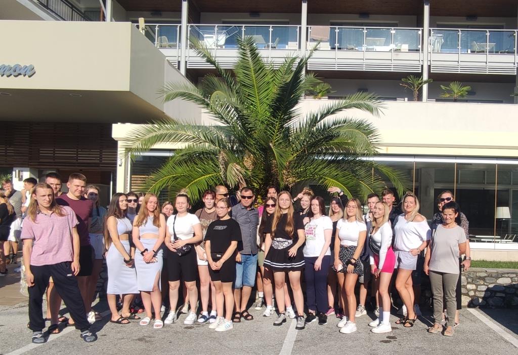 Miejscowością docelową było urocze miasteczko Paralia Panteleimonos. Giżycko żegnało temperaturami typowo jesiennymi, a Grecja – powitała pięknym słońcem i szumem ciepłego Morza Egejskiego, w którym uczestnicy mobilności wielokrotnie zażywali kąpieli.