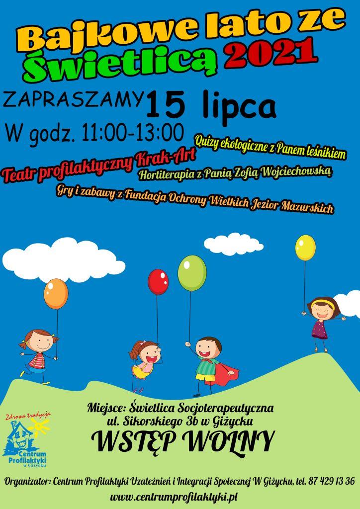 Centrum Profilaktyki Uzależnień i Integracji Społecznej zaprasza na kolejną odsłonę Bajkowego Lata – 15 lipca 2021 r. o godz. 11.00 na placu przy Świetlicy Socjoterapeutycznej ul. Sikorskiego 3 b.