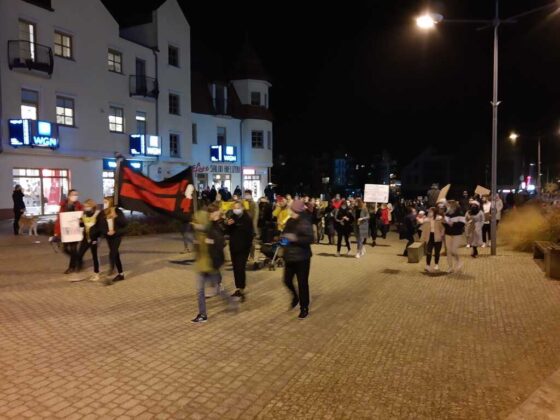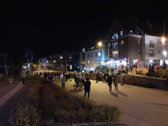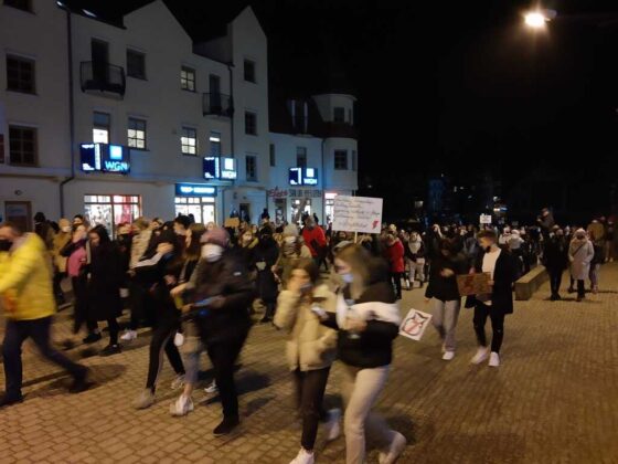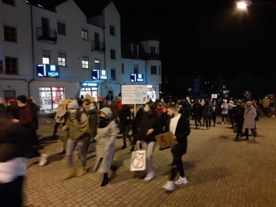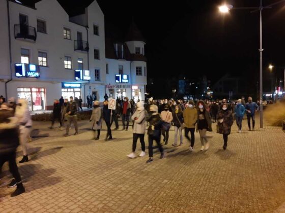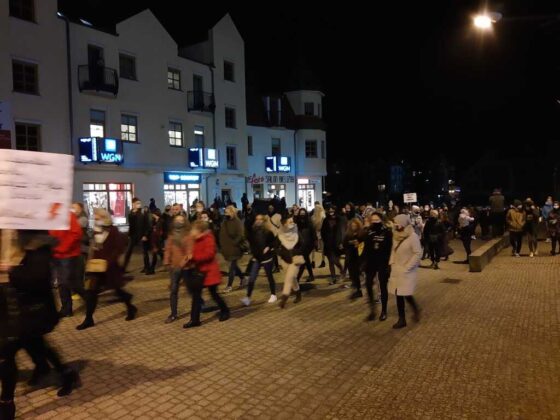 Dzisiejszy „Giżycki Spacer – Pogrzeb Praw Kobiet 2” nie przyciągnął takich tłumów jak w poprzednim tygodniu. W większości, młodzi ludzie zebrali się na Pasażu Portowym. Mieli transparenty i nagłośnienie. Około godziny 17.40 – pod eskortą policji – wyruszyli na spacer ulicami miasta.