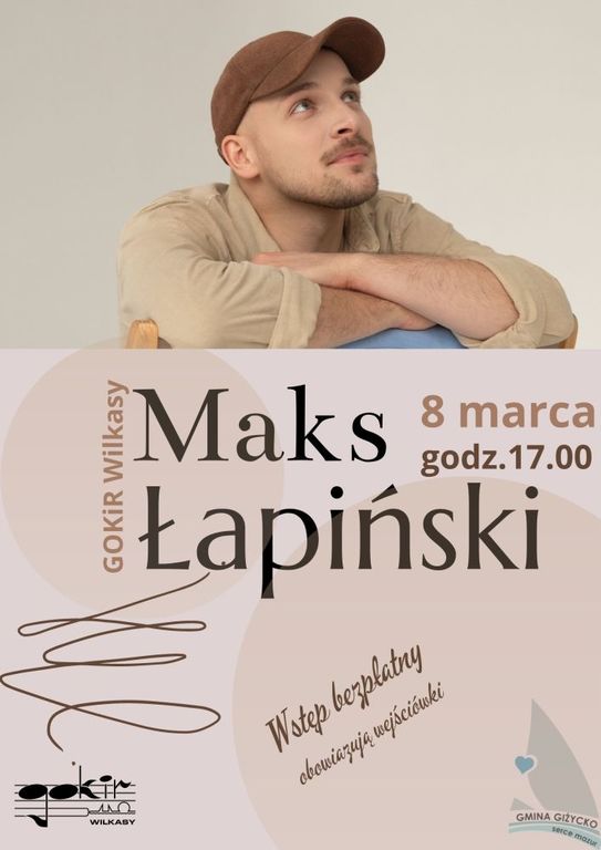 Tegoroczny Dzień Kobiet w Gminnym Ośrodku Kultury i Rekreacji w Wilkasach uświetni koncert Maksa Łapińskiego, bydgoszczanina, finalisty popularnego programu telewizyjnego „The Voice of Poland”.