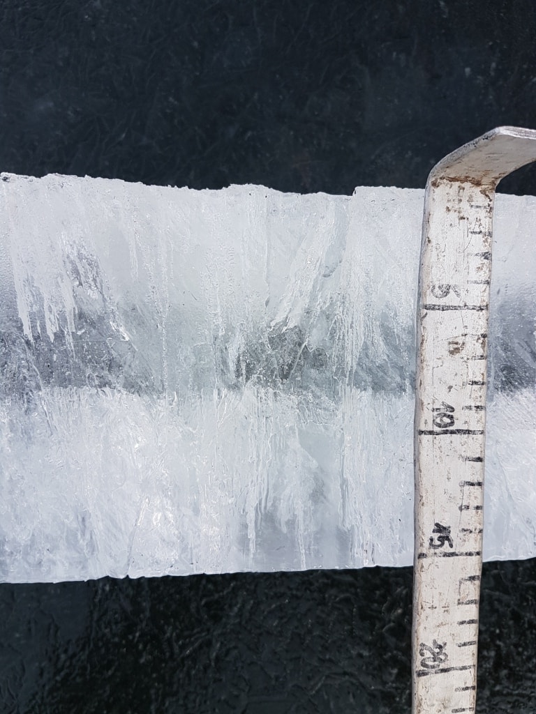W poniedziałek 27-go lutego lód miał 20 centymetrów grubości i miał tendecje do tzw. szpilkowania, które znacząco osłabia jego właściwości nośne. Kolejne, dzisiejsze badanie lodu wykazało już jedynie 15 centymetrów lodu o mocno szpilkowatej strukturze. Po tych badaniach łatwo można wysnuć wniosek, że w ciągu pięciu dni ubyło 5 centymetrów lodu a jego właściwości się pogorszyły do tego stopnia że nie nadaje się do bezpiecznego korzystania.