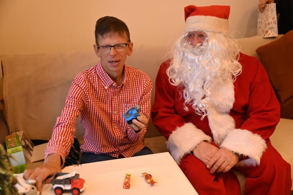 6 grudnia mikołajkowy konwój Gminnego Ośrodka Kultury i Rekreacji w Wilkasach odwiedził sześć osób, które ze względu na swoje schorzenia nie dotarły do Centrum Aktywnego Wypoczynku „Gwarek” w Pięknej Górze. Tam dzień wcześniej dla dużego grona naszych podopiecznych były przygotowane cudowne zabawy z Elfami i wspaniałe paczki.