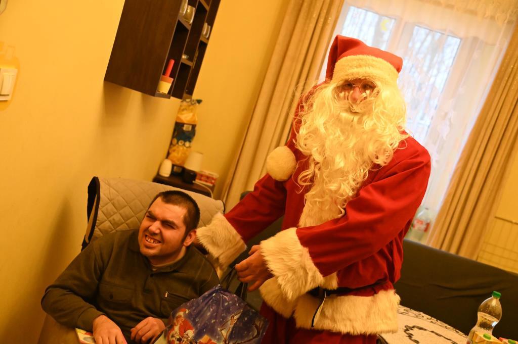 W rolę Mikołaja wcielił się wójt gminy Giżycko Marek Jasudowicz, w pięknym czerwonym wdzianku z nieodłącznym dzwoneczkiem w dłoni udając się do Bystrego, Gorazdowa, Doby, Wilkas oraz Upałt Małych. Przemek, Wojtek, Judyta, Marta, Bartek i Andrzej dzisiaj mają już ponad 30 lat, jednak mimo takiego wieku grudzień bez Mikołaja nie mógłby dla nich istnieć. Do tej wizyty przygotowywali się już od dłuższego czasu, czyszcząc przy pomocy rodziców własne buty. Patrząc na przybysza z Laponii i wypełnione po brzegi słodyczami świąteczne torby pozyskane dzięki nieocenionym sponsorom twarze chorych rozpromieniały się. Każdy z nich chociaż przez chwilę chciał przytulić się do gościa, żeby jak najdłużej poczuć magię zbliżających się świąt Bożego Narodzenia. Od razu wszyscy prosili Mikołaja, aby pamiętał o nich koniecznie za rok.