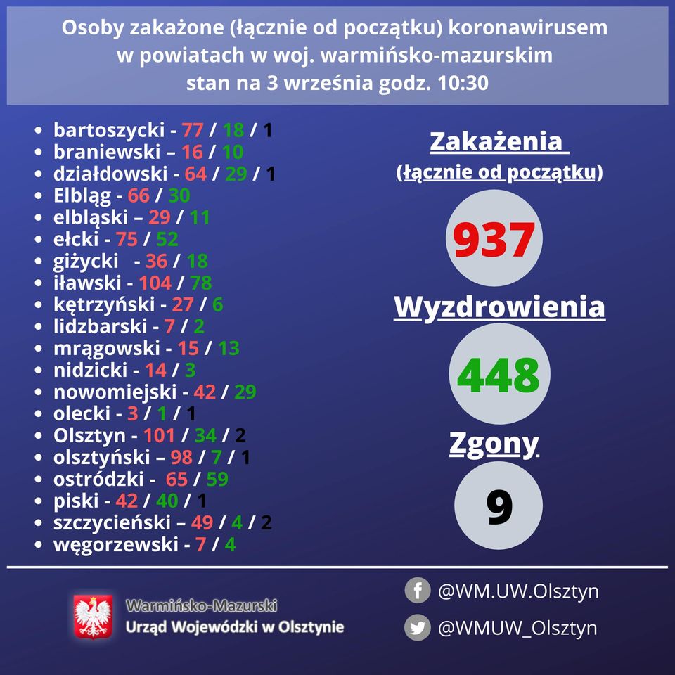 Urząd Wojewódzki w Olsztynie poinformował o 16 nowych zakażonych i 28 wyzdrowiałych osobach w województwie Warmińsko-Mazurskim.