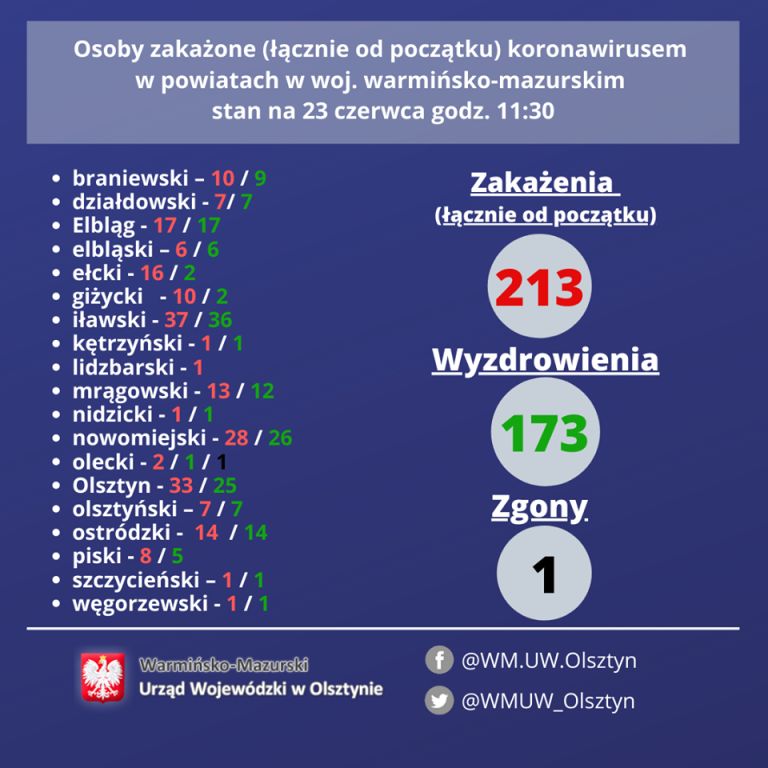 Dzienny raport dotyczący koronawirusa w powiecie giżyckim – stan na dzień 23.06.2020 r.