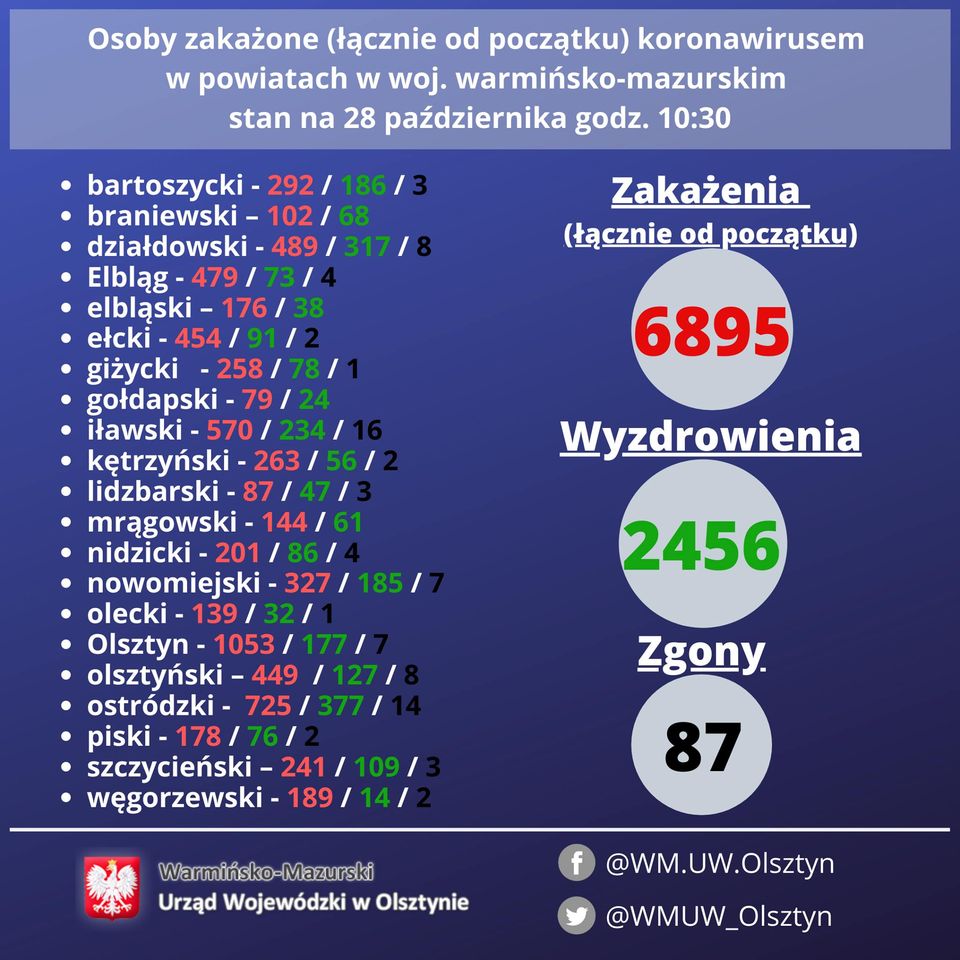 W ciągu ostatniej doby badania laboratoryjne potwierdziły SARS-CoV-2 u 442 mieszkańców województwa Warmińsko Mazurskiego. Są też dobre wiadomości, 87 osób wyzdrowiało.