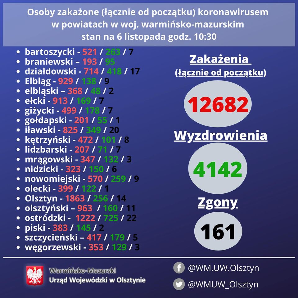 Na Warmii i Mazurach minionej doby potwierdzono 826 przypadków zakażenia Sars Cov-2. Najwięcej w Olsztynie – 114 oraz w powiecie ełckim – 103. Urząd wojewódzki poinformował o śmierci 23 chorych. W powiecie giżyckim zakażenie koronawirusem potwierdzono u kolejnych 30 osób.