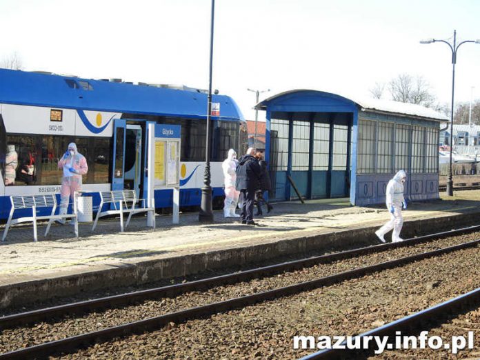Do zdarzenia doszło w poniedziałek (23.03) po godzinie 11.00. Na stacji kolejowej w Giżycku pojawili się policjanci oraz pracownicy służb medycznych ubrani w kombinezony.