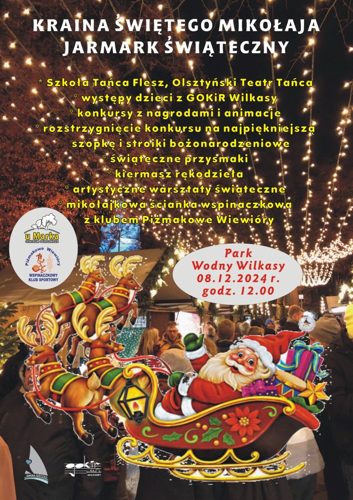 Zbliża się piękna impreza nawiązująca klimatem do Świąt Bożego Narodzenia, czyli Kraina Świętego Mikołaja. Już 8 grudnia w godz. 12.00-15.00 każdy, kto wstąpi do hali sportowej Parku Wodnego Wilkasy, może liczyć na mnóstwo atrakcji.