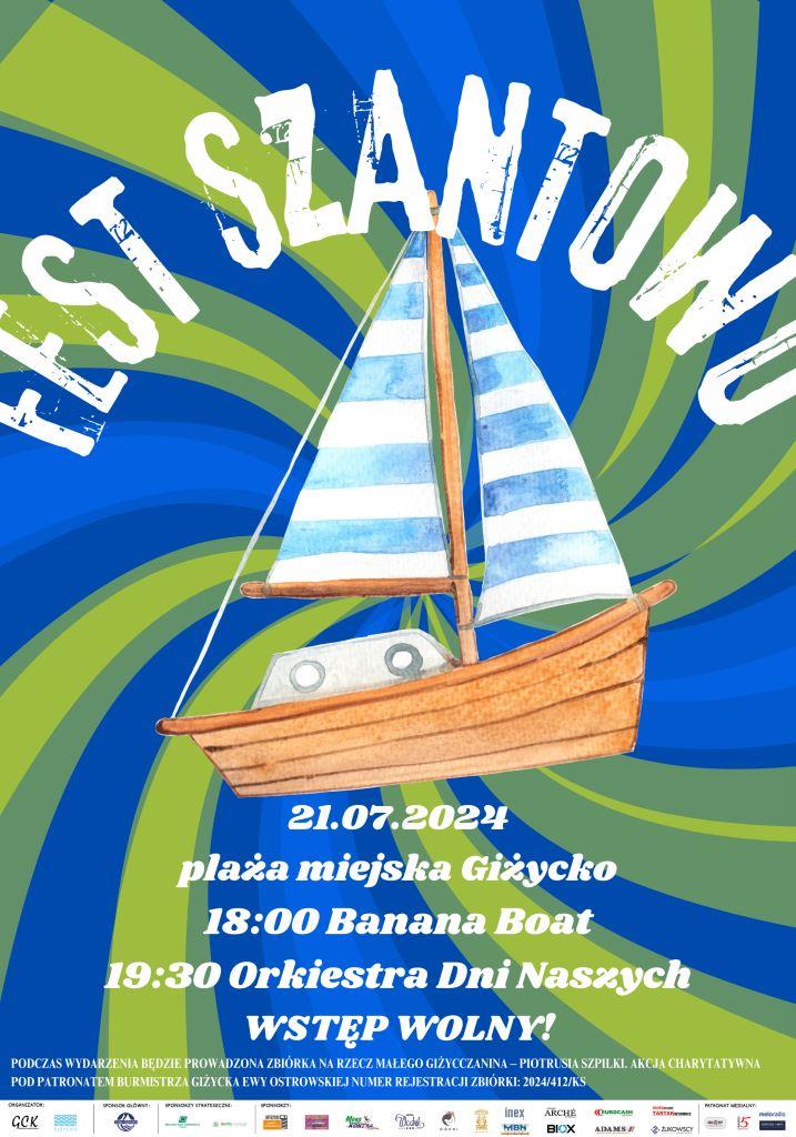 21 lipca Fest Szantowo, czyli koncert muzyki żeglarskiej na plaży miejskiej. Startujemy o 18:00. Wystąpi Banana Boat oraz Orkiestra Dni Naszych [WSTĘP WOLNY]