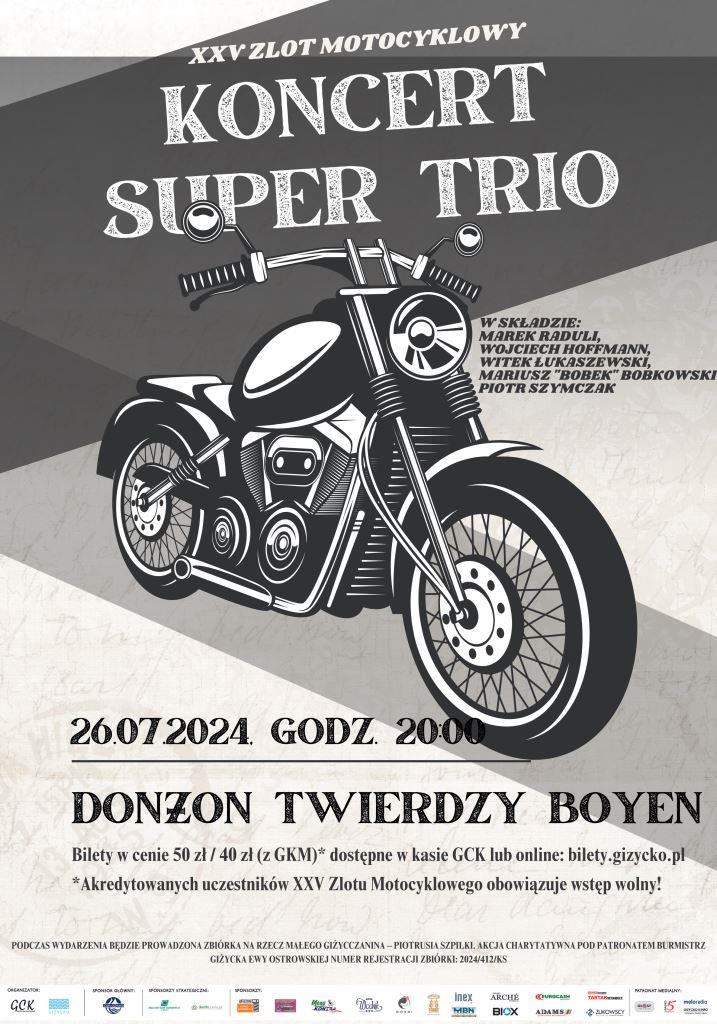 26 lipca Koncert Super Trio w składzie: Marek Raduli, Wojciech Hoffmann, Witek Łukaszewski, Mariusz Bobek Bobkowski, Piotr Szymczak. Bilety w cenie 50 zł (40 zł z GKM) wkrotce dostępne online oraz stacjonarnie w kasie kina Nowa Fala . Koncert odbędzie się na donżonie Twierdzy Boyen w ramach XXV Zlotu Motocyklowego*
