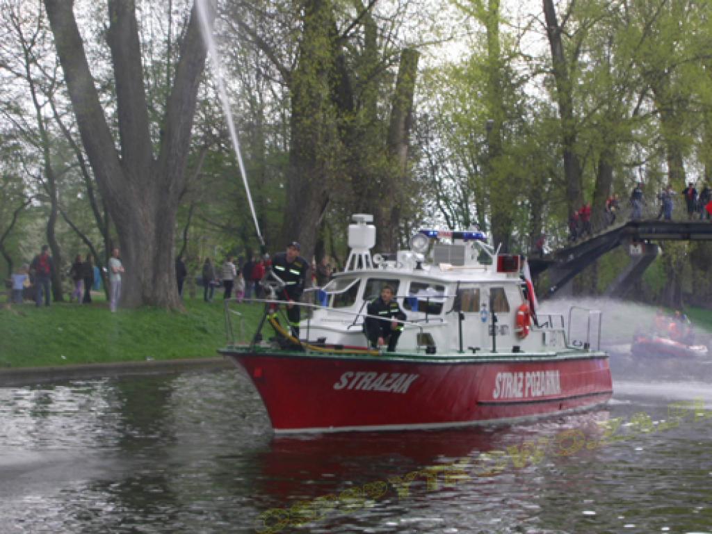 „Jesteśmy w posiadaniu tej łodzi od 2004 roku. Zaraz po zakupie, a chwile przed zwodowaniem, statek został pomalowany w barwy strażackie (no i wiadomo, że czerwony jest szybszy 🙂 ) Służył nam dzielnie jako statek-baza podczas zabepieczeń regat i akcji poszukiwawczych. Jednak największe show robił podczas parady jednostek pływających na otwarciu sezonu żeglarskiego, gdzie na jego pokładzie robiliśmy to co umiemy najlepiej – laliśmy wodę. W 2011 roku przeszedł remont wnętrza.
