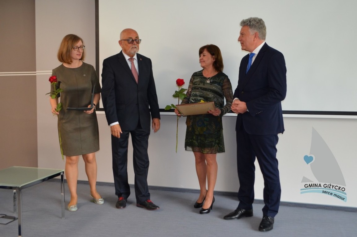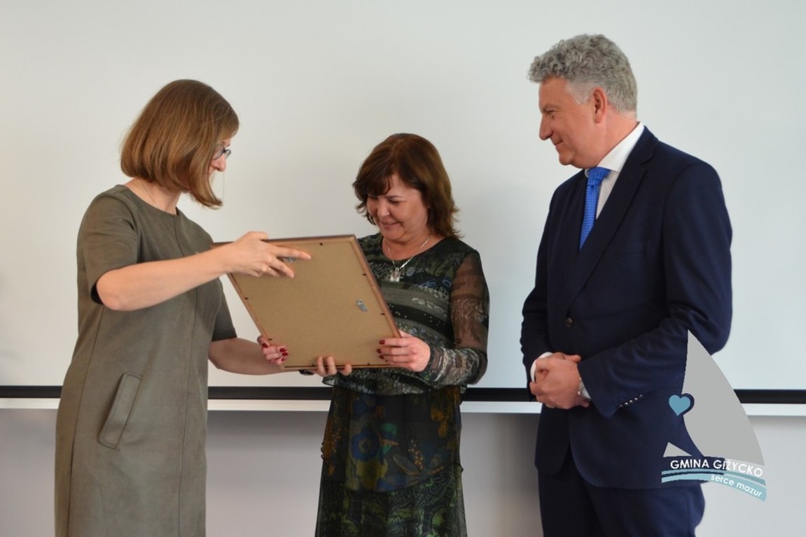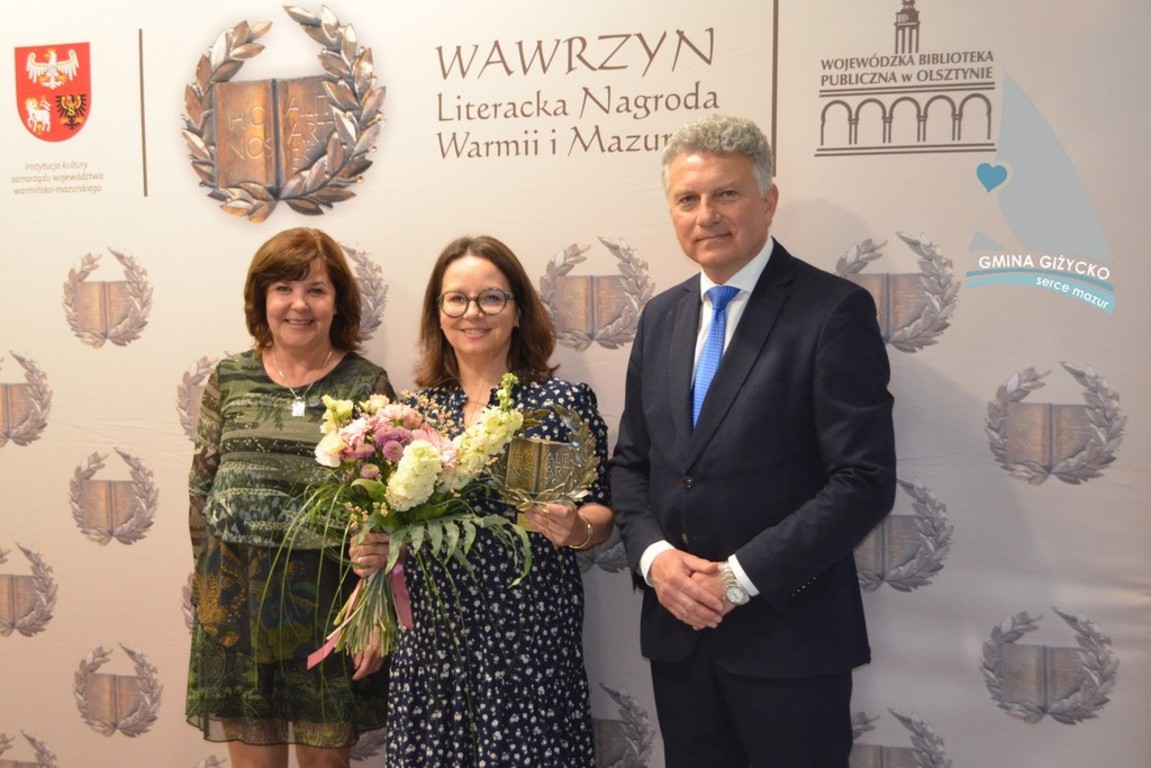 Uroczysta gala wręczenia nagród odbyła się w siedzibie Wojewódzkiej Biblioteki Publicznej w Olsztynie. W imieniu Wójta Gminy Giżycko nagrodę z rąk Dyrektora Wojewódzkiej Biblioteki Publicznej Andrzeja Marcinkiewicza odebrała Dyrektor Gminnej Biblioteki Publicznej w Wilkasach Joanna Łępicka z Sekretarzem Gminy Giżycko Dariuszem Grygiencza.