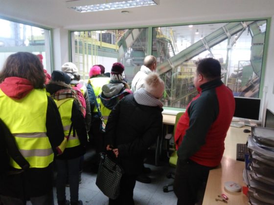 Zapoznaliśmy się z zasadami funkcjonowania zakładu, procesami unieszkodliwiania i odzysku odpadów. Zwiedzając halę sortowni przewodnik omówił kolejne etapy rozdzielania odpadów zmieszanych i suchych. Widzieliśmy przygotowane do transportu palety plastikowych opakowań, aluminium, szkła i innych metali z przeznaczeniem do ponownego recyklingu. Byliśmy również w miejscu składowania odpadów organicznych, z których w końcowym etapie powstaje ziemia kompostowa. Jest ona wykorzystywana do rekultywacji np. zamykanych już starych składowisk odpadów.