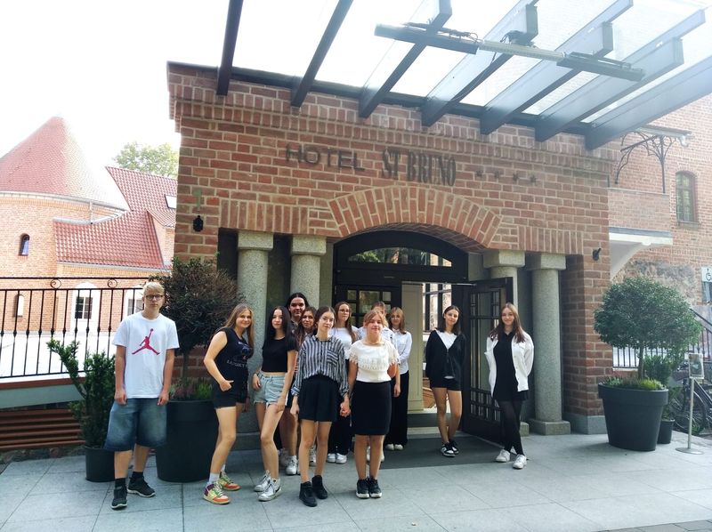 W ramach realizacji lekcji, dnia 13 września, grupa hotelarzy z klasy 1BT Zespół Szkół Zawodowych w Giżycku przeprowadziła zajęcia w hotelu St. Bruno. Absolwent ZSZ w Giżycku, obecny pracownik Hotelu St. Bruno – manager doświadczeń gości, Kamil Świderski, zapoznał przyszłych hotelarzy ze schematem organizacyjnym całego obiektu w środku i na zewnątrz.