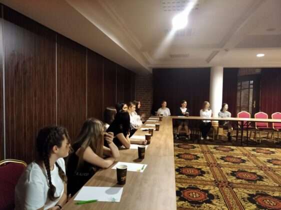Na wstępie na grupę w sali konferencyjnej czekała niespodzianka w postaci poczęstunku, przygotowanego przez Panią kierownik restauracji. Kamil przedstawił prezentację opowiadającą o historii hotelu oraz zapoznał uczniów z głównymi zasadami pracy hotelarza.