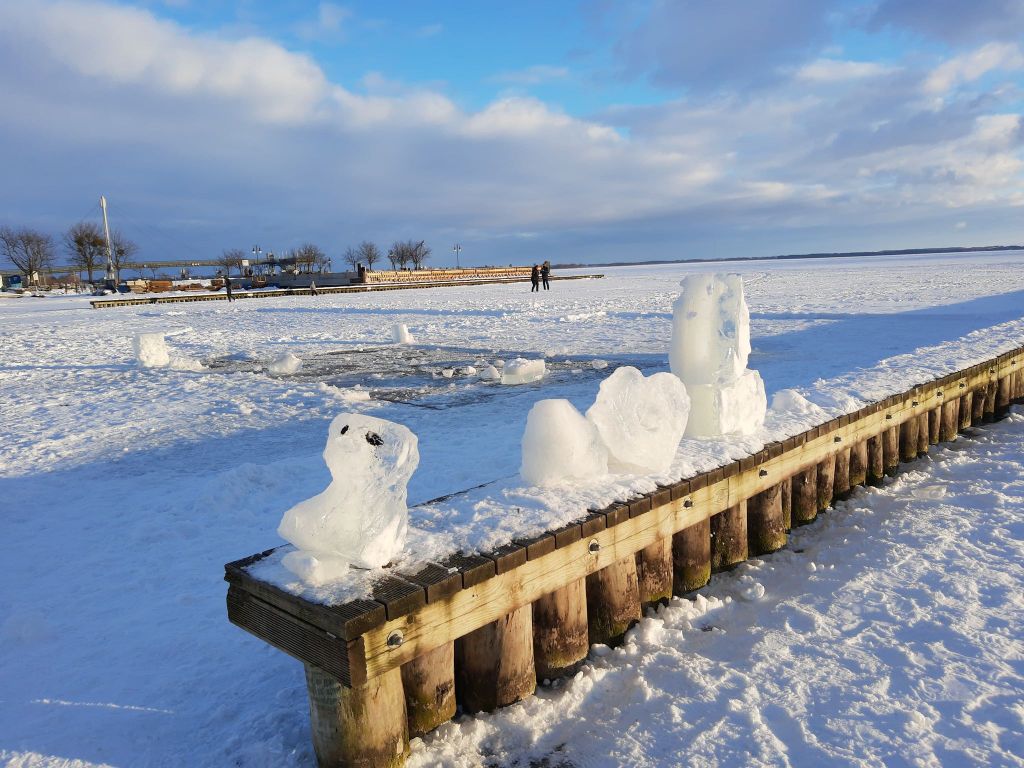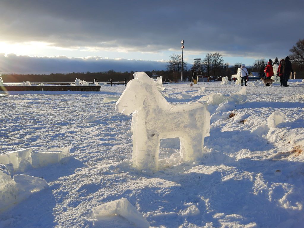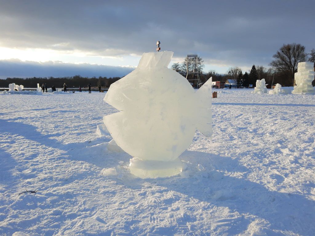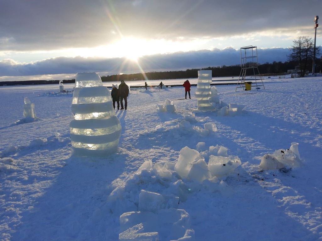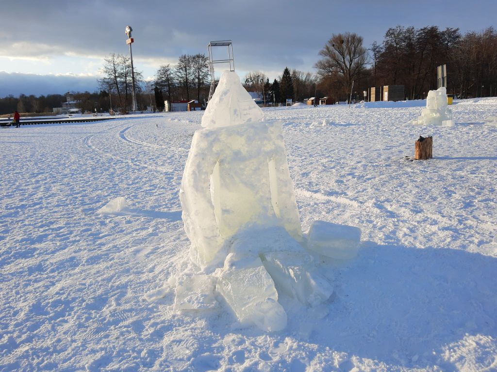 Dzisiaj (13.02) nad jeziorem Niegocin na plaży miejskiej profesjonalni rzeźbiarze, sympatycy i członkowie Giżyckiego Klubu Morsów „Zimny Ptak oraz mieszkańcy Giżycka tworzyli lodowe rzeźby.