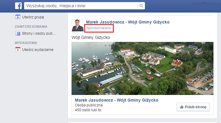 Wójt podobnie jak Burmistrz Iwaszkiewicz prowadzi własny blog internetowy. Jednak ostatni wpis na stronie jasudowicz.pl pochodzi z 23 maja 2015r. Wygląda na to, że zapał Pana Wójta ostygł wraz w wygranymi wyborami. O wiele lepiej od bloga prezentuje się profil na facebooku, który liczy 495 polubień. Wójt Jasudowicz systematycznie dodaje informacje o tym co słychać w Gminie. Jedyne co w ostatnim czasie zaczęło nas zastanawiać, to promowanie profilu Marek Jasudowicz Wójt Gminy Giżycko, poprzez reklamy sponsorowane na facebooku. Czyżby Pan Wójt próbował „kupić” lajki mieszkańców?:)