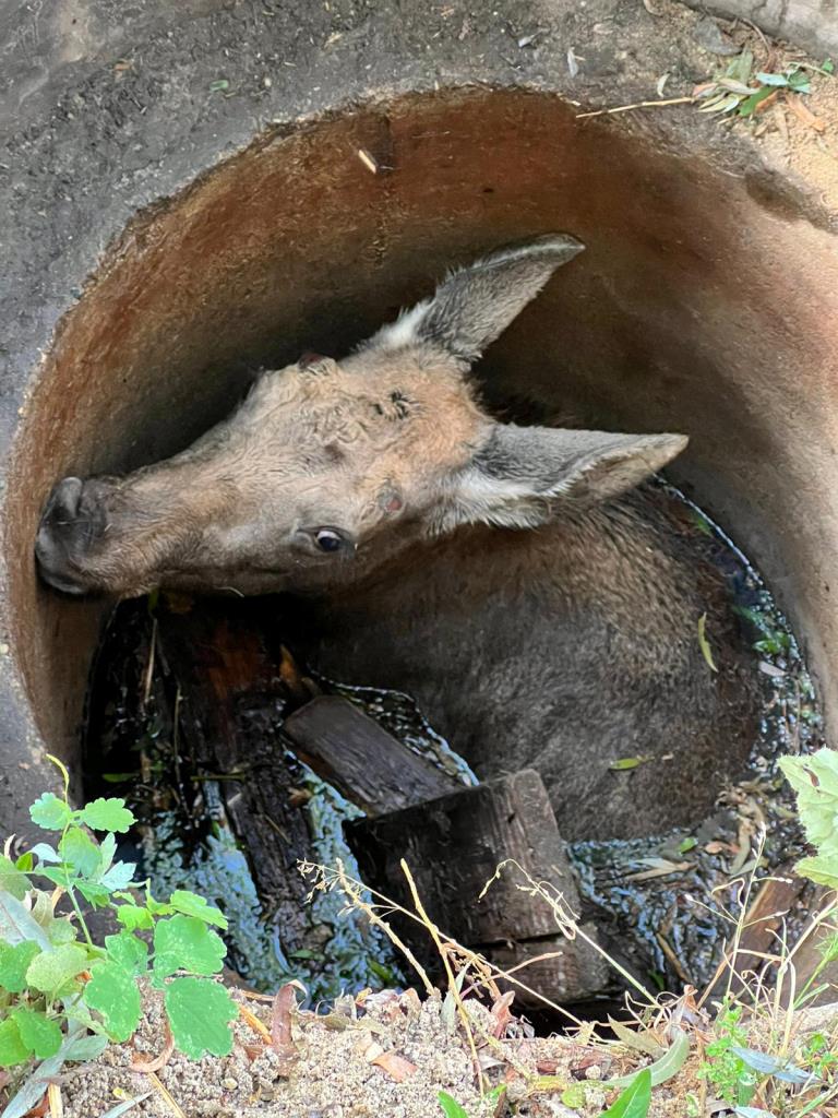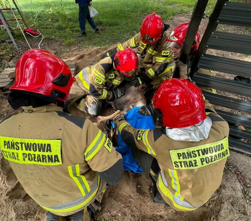 Strażacy z Komendy Powiatowej Państwowej Straży Pożarnej w Giżycku uratowali młodego łosia, który wpadł do studni chłonnej i samodzielnie nie potrafił jej opuścić.