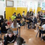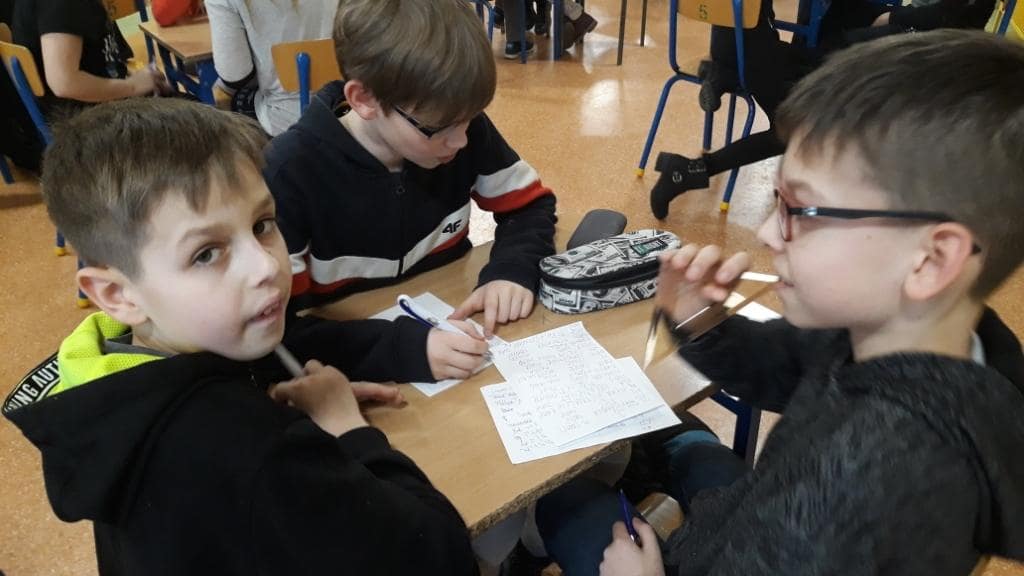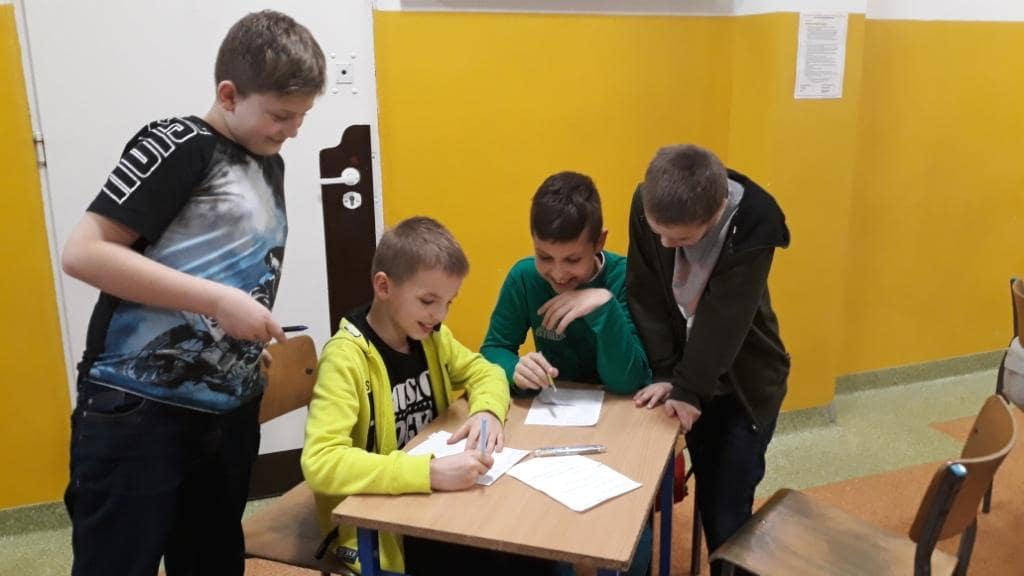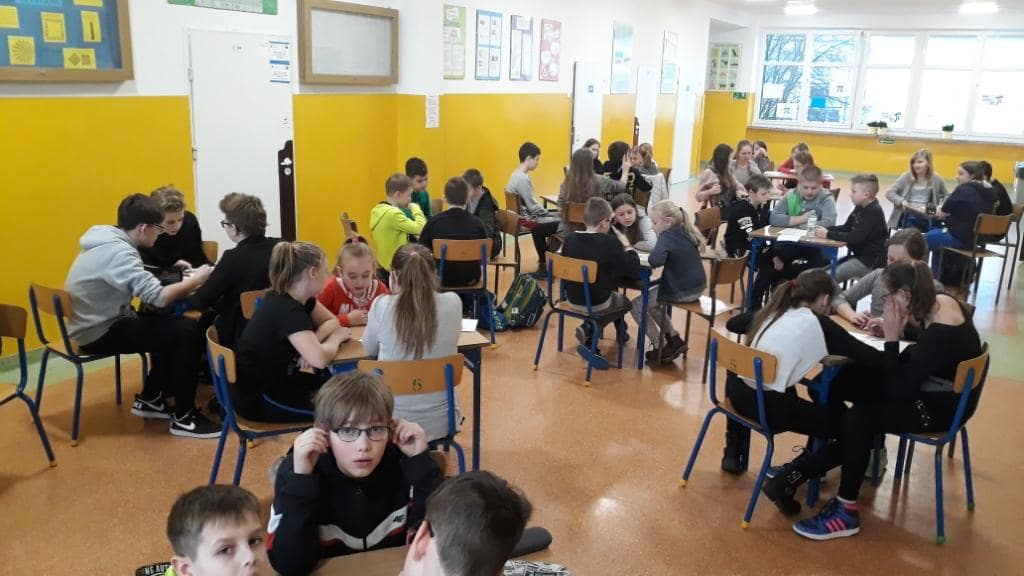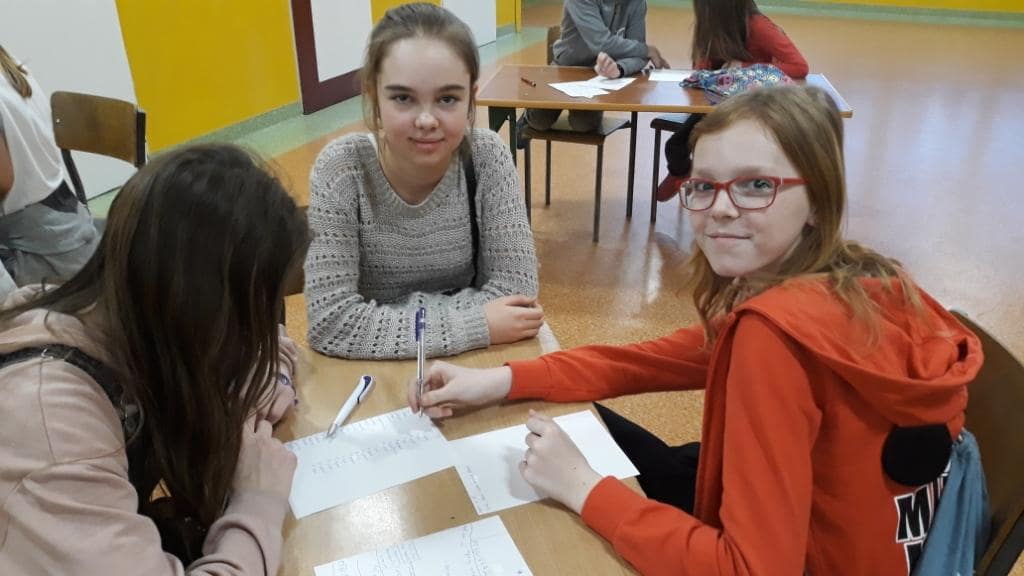Dzień Liczby Pi to świetna okazja, żeby się o tym przekonać. Z niewielkim poślizgiem, po godzinie 16.30 na korytarzu zjawiły się trzyosobowe drużyny z różnych klas. Stawiły się po to, aby lepiej poznać liczbę Pi w konkursie międzyklasowym. Po obejrzeniu prezentacji o liczbie Pi, rozpoczęło się pierwsze zadanie – quiz. Czas wykonania zadania to 10 minut, ale okazał się dla niektórych zbyt długi. Były drużyny, które zrobiły ten test w dwie minuty. Kolejna konkurencja to rebusy, w których królowała liczba Pi. Następnym zadaniem było zapisanie wyrazów z sylabą pi; na końcu, na początku czy w środku – obojętne.