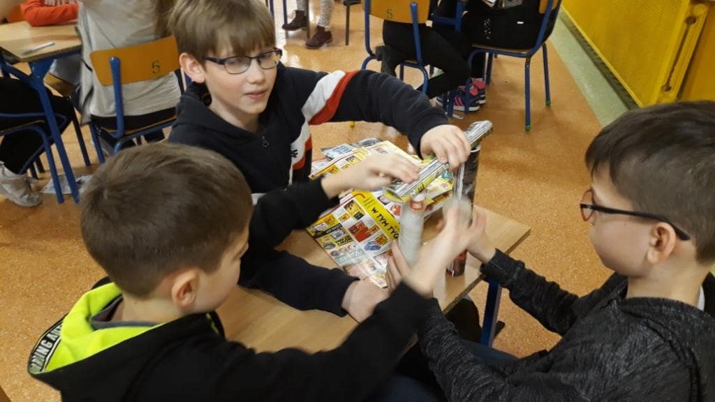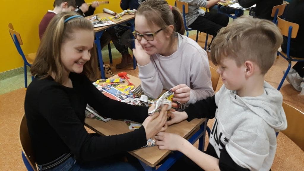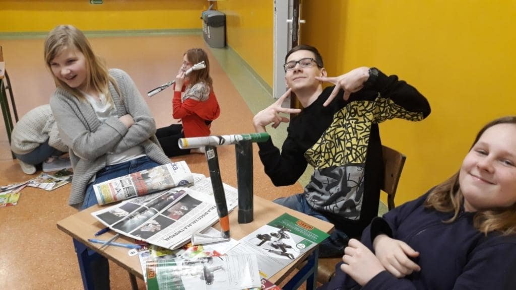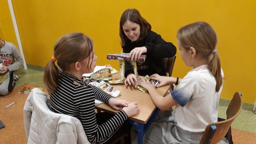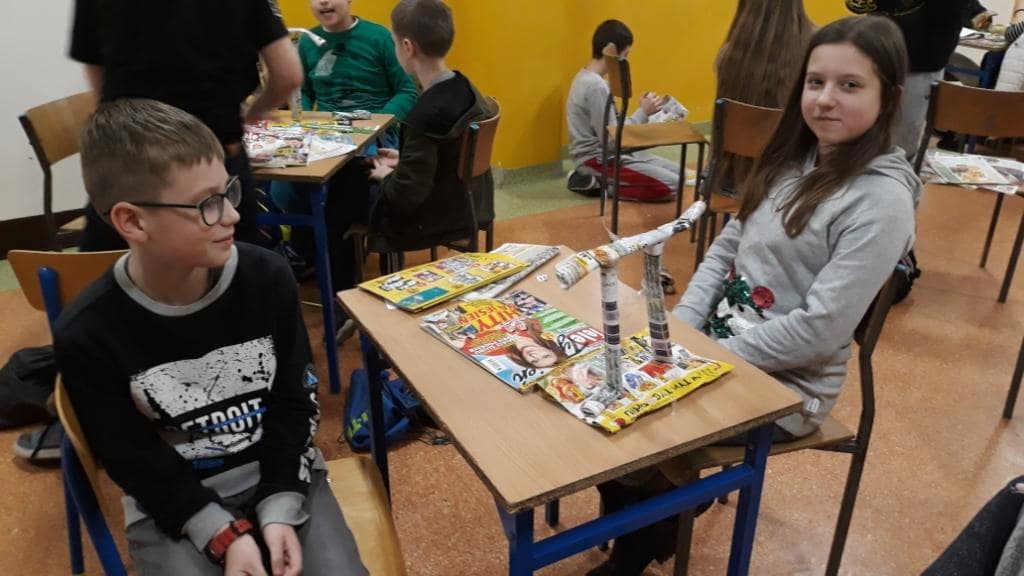 Rekordziści ułożyli 78 wyrazów w czasie 10 minut. Przy następnym zadaniu było bardzo dużo śmiechu. A należało ułożyć z wymyślonych przez siebie wyrazów opowiadanie. I tu znów czas był ograniczony – 10 minut. Konkurs zakończył się ułożeniem z gazet liczby Pi w formacie 3D.