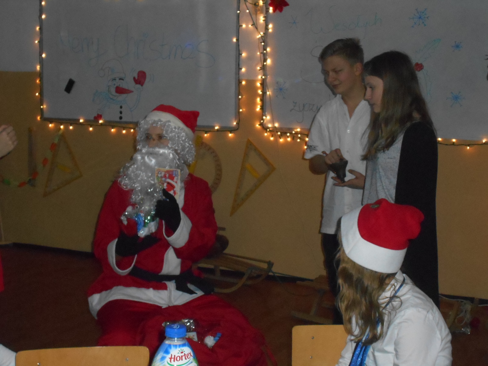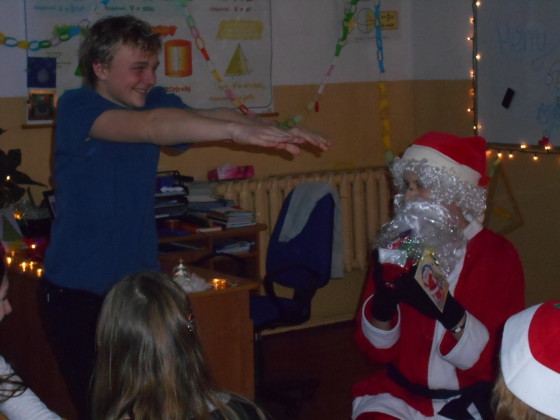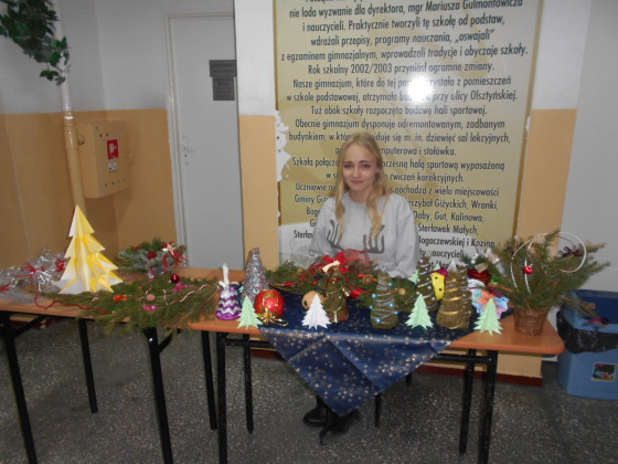 21 i 22 grudnia 2015 r. w Publicznym Gimnazjum im. Szarych Szeregów w Wilkasach panowała świąteczna atmosfera związana ze zbliżającymi się Świętami Bożego Narodzenia. Śnieżynki, krążący po korytarzach Mikołaje z prezentami, zapach pierników, dyskretna muzyka były dowodem na to, że święta tuż tuż. Na korytarzu rozbrzmiewała piękna gra saksofonu, na którym świąteczne hity i polskie kolędy grała uczennica klasy 3b – Klaudia Pilichiewicz. Na klawiszach akompaniował jej opiekun projektu edukacyjnego pan Marek Wojciechowski.