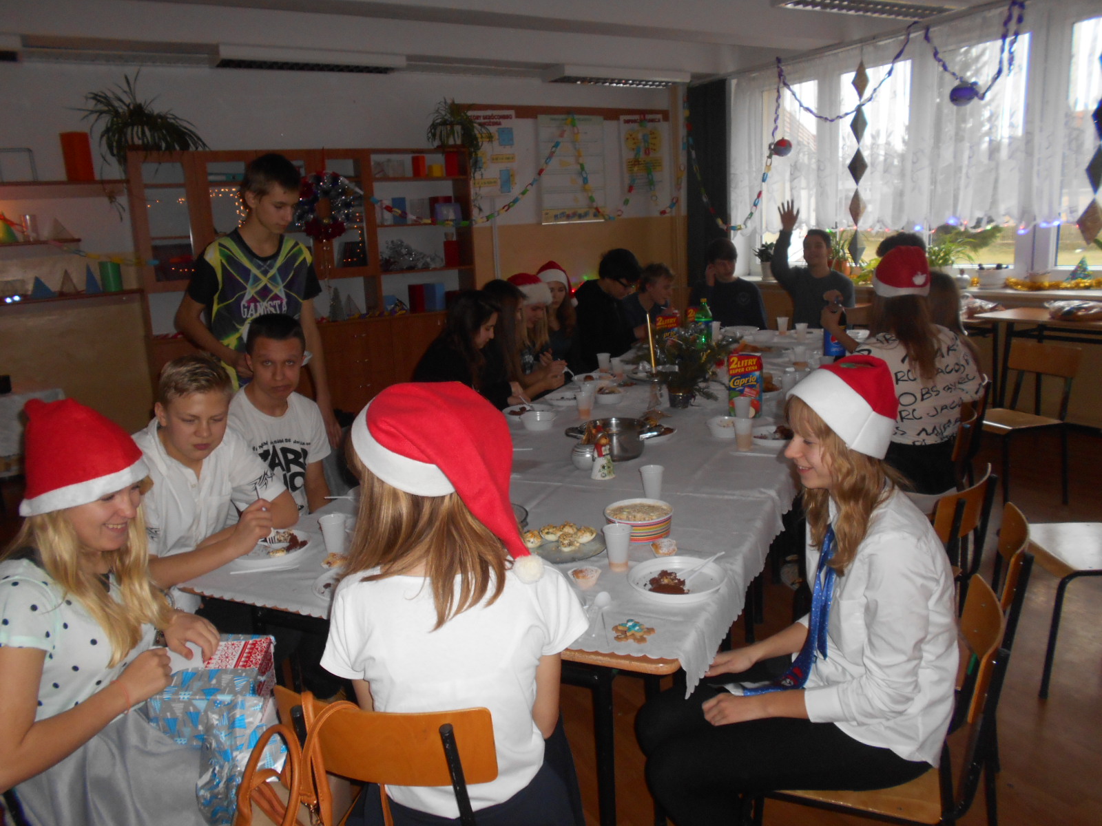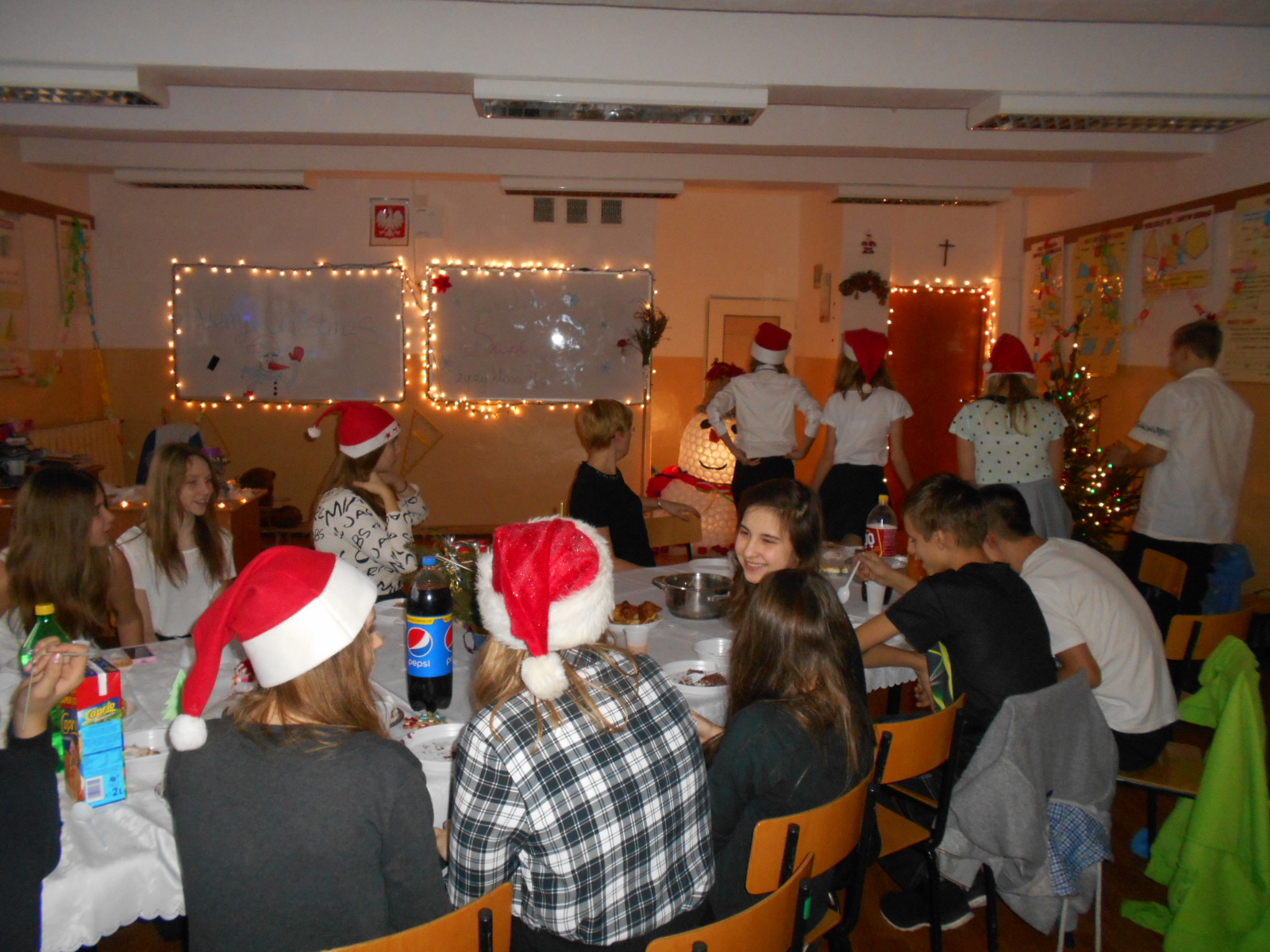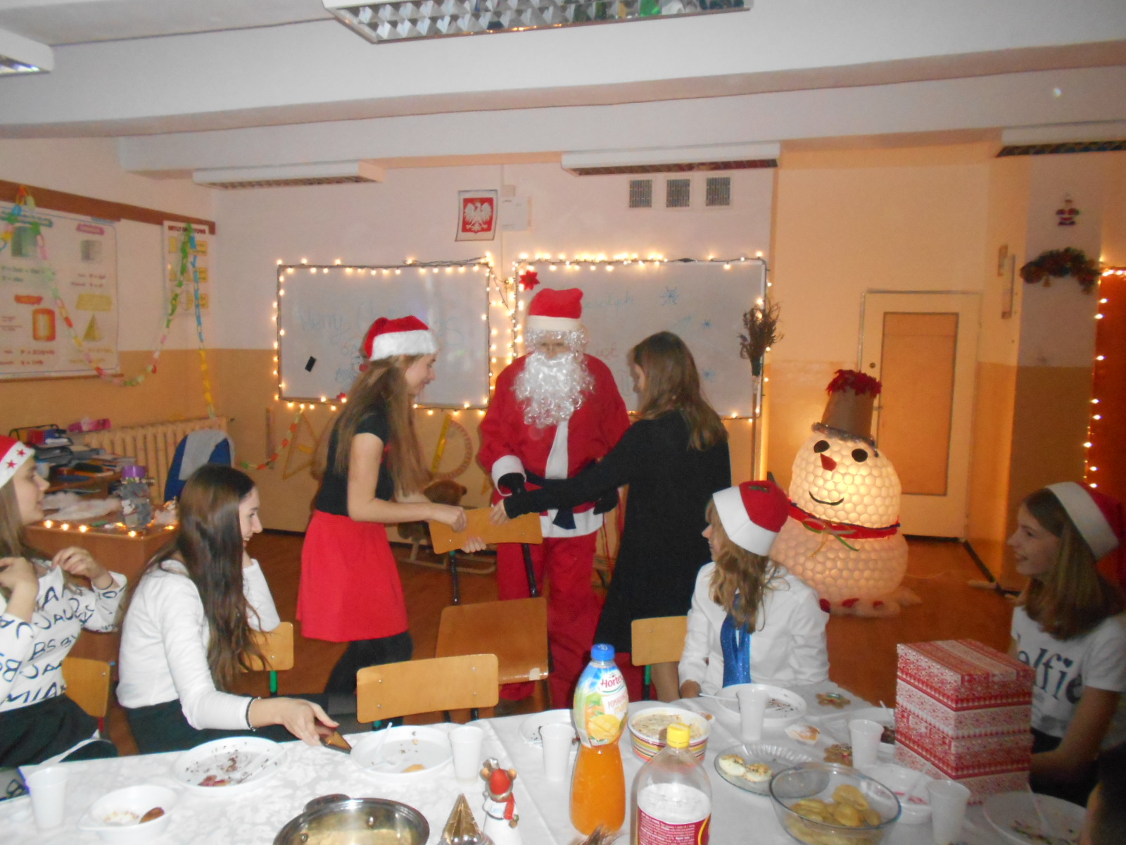 Klasy przystrojone, uczniowie ubrani na galowo, świąteczne smakołyki, tradycyjne łamanie się opłatkiem i symboliczne prezenty sprawiły, że te dni przybliżyły Nas do Wigilii Bożego Narodzenia. Uczniowie opowiadali także o swoich przygodach z dzieciństwa związanych z Bożym Narodzeniem i listach do Mikołaja.