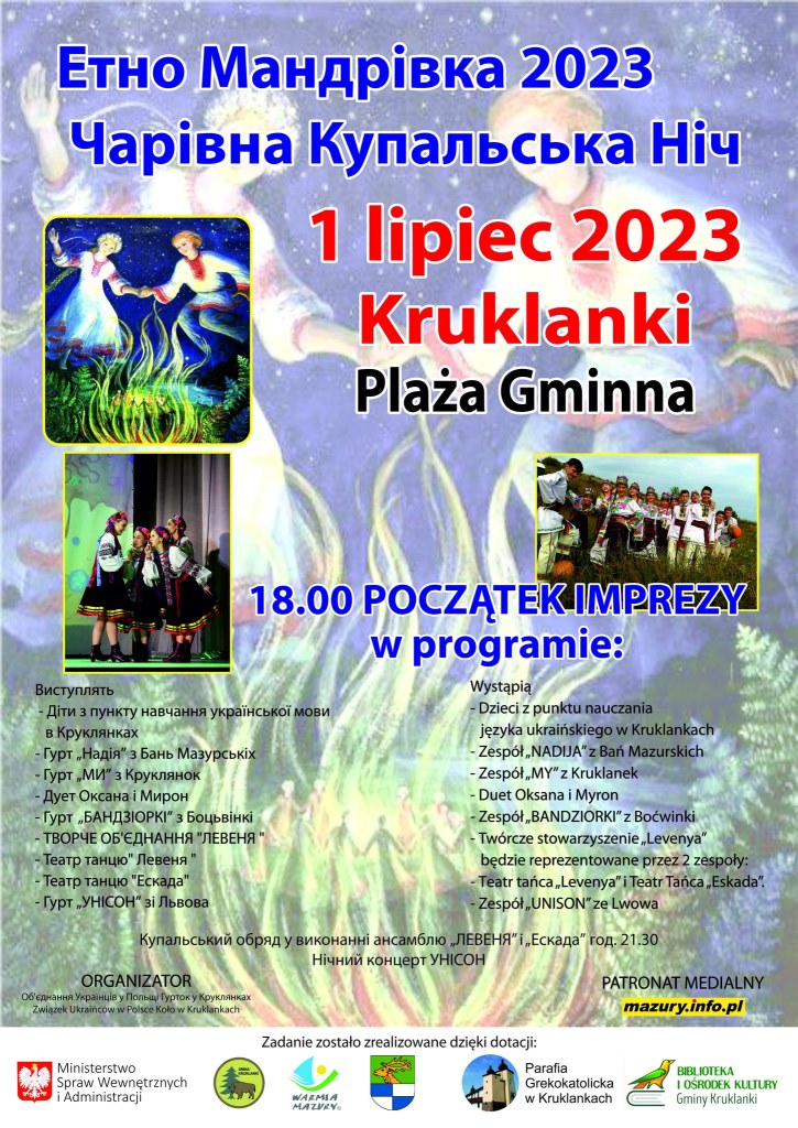 Magiczna Noc Kupały w Kruklankach [ZAPOWIEDŹ] 26 czerwca 20230Magiczna Noc Kupały w Kruklankach. Szczegóły wydarzenia poniżej na plakacie.
