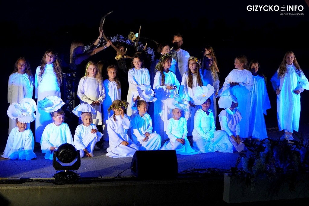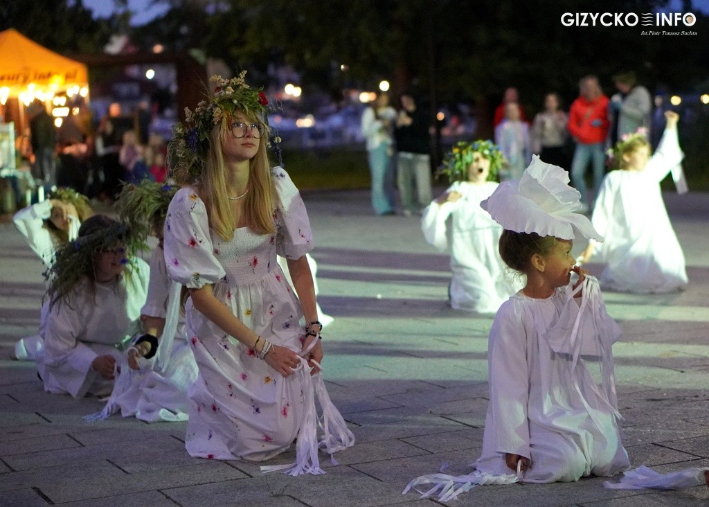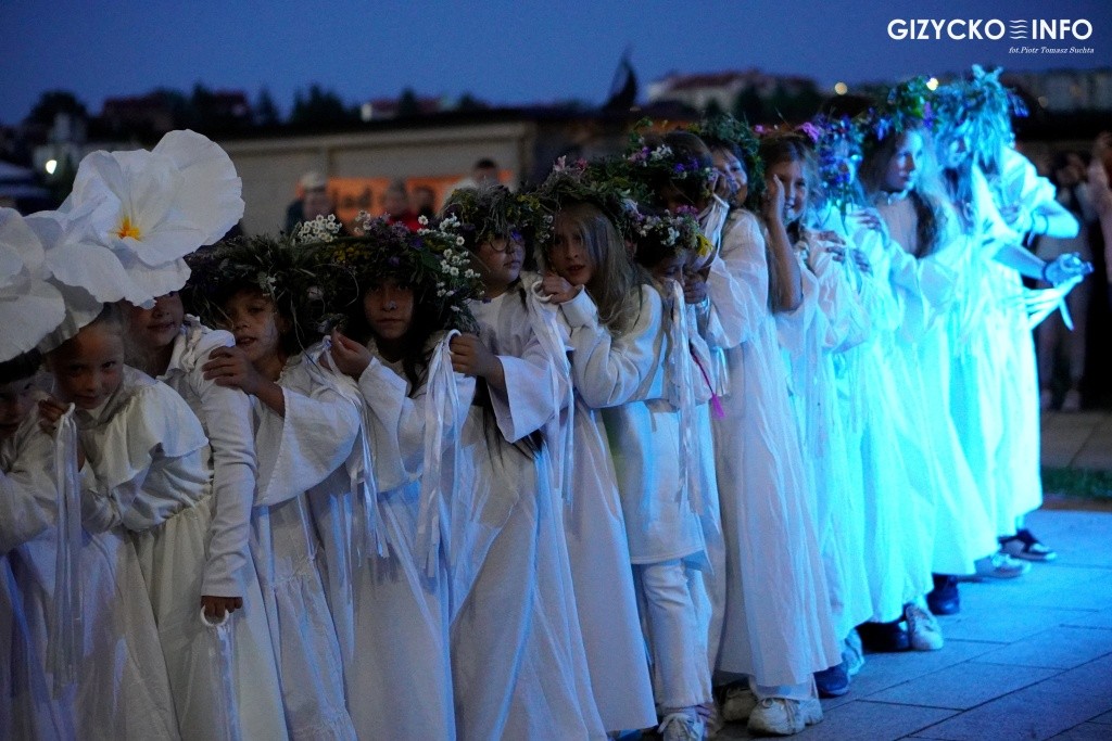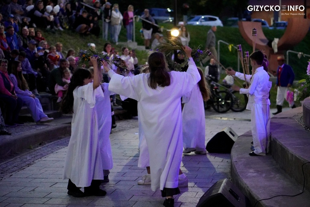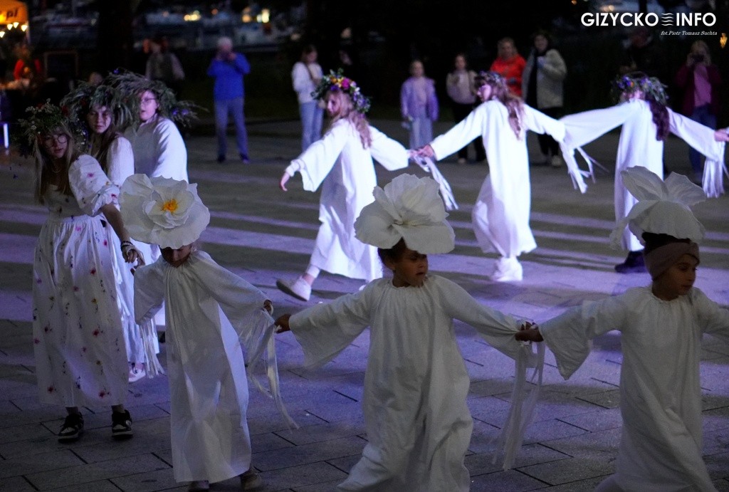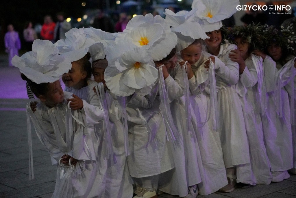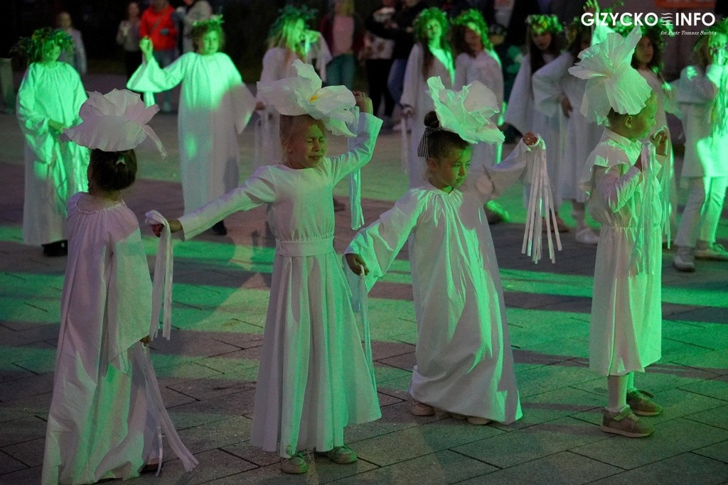 Nie zabrakło też obrzędu świętojańskiego, który w pięknej oprawie zaprezentowały dzieci i młodzież z Rynu. Kulminacyjnym momentem wieczoru było symboliczne szukanie kwiatu paproci, które rozbudziło wyobraźnię najmłodszych i przypomniało o magii ludowych legend.